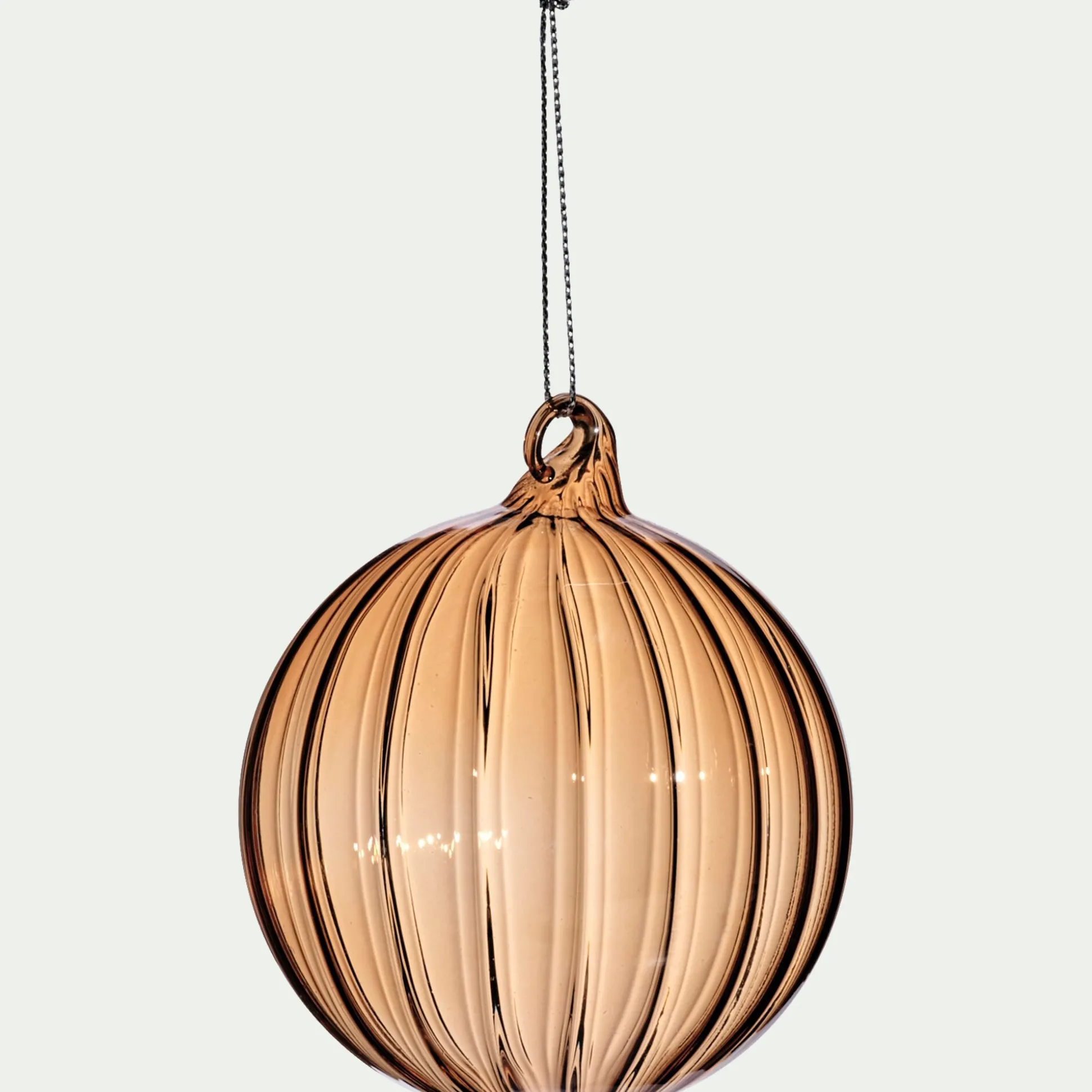 Le sapin se pare de tons chaleureux et naturels, une élégance simple mais intemporelle. La boule de Noël Tinab, complice de cette ambiance raffinée, revêt une teinte jaune, magnifiée par la transparence du verre. Un éclat éthéré dansant au gré de la lumière. Ce lot de boules de Noël rondes se dévoile légèrement twistée, un art du verre habile, créant un motif en relief. De joyeux ornements festifs à suspendre en attendant la visite du cher Père Noël.