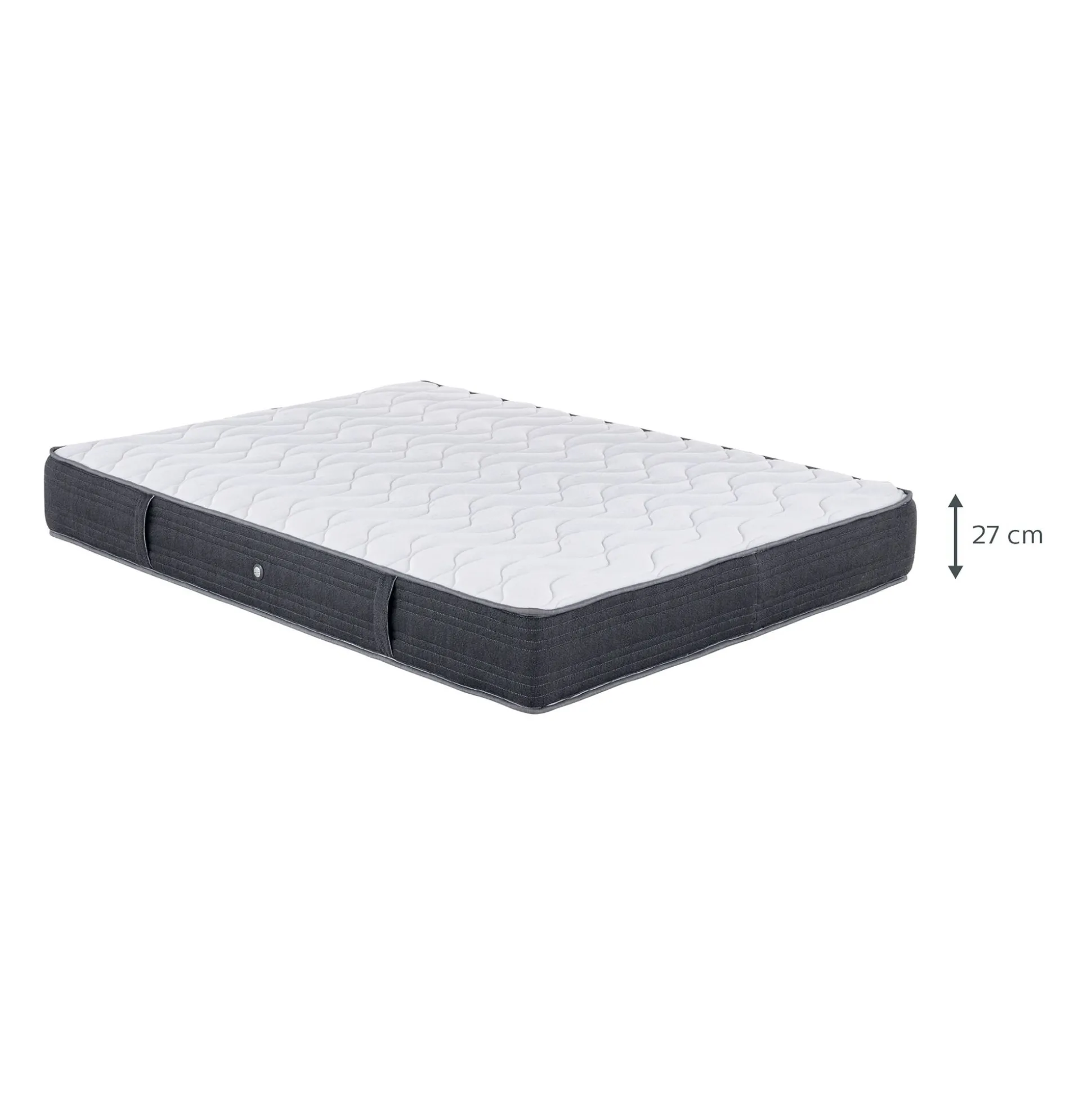 Jouissez de belles nuits de repos, ainsi que d’un sommeil réparateur en choisissant ce matelas à ressorts en 160x200cm. Il est muni de ressorts ensachés, une technologie qui permet à ce grand matelas de vous offrir un réel confort morphologique. En effet, il s’adapte parfaitement aux formes de votre corps, afin de vous proposer une meilleure position lorsque vous dormez et une meilleure indépendance de couchage. Ce matelas arbore 2 faces, une face été et une face hiver. Il est donc réversible et vous permet de vous tenir chaud l’hiver et de bénéficier d’une meilleure aération l’été. Associé à un sommier de qualité, ce matelas à l’accueil et au soutien fermes conviendra parfaitement à votre chambre à coucher. Choisissez une belle parure de lit qui donnera un charme supplémentaire à votre déco d’intérieur. Ce matelas est disponible en plusieurs tailles.