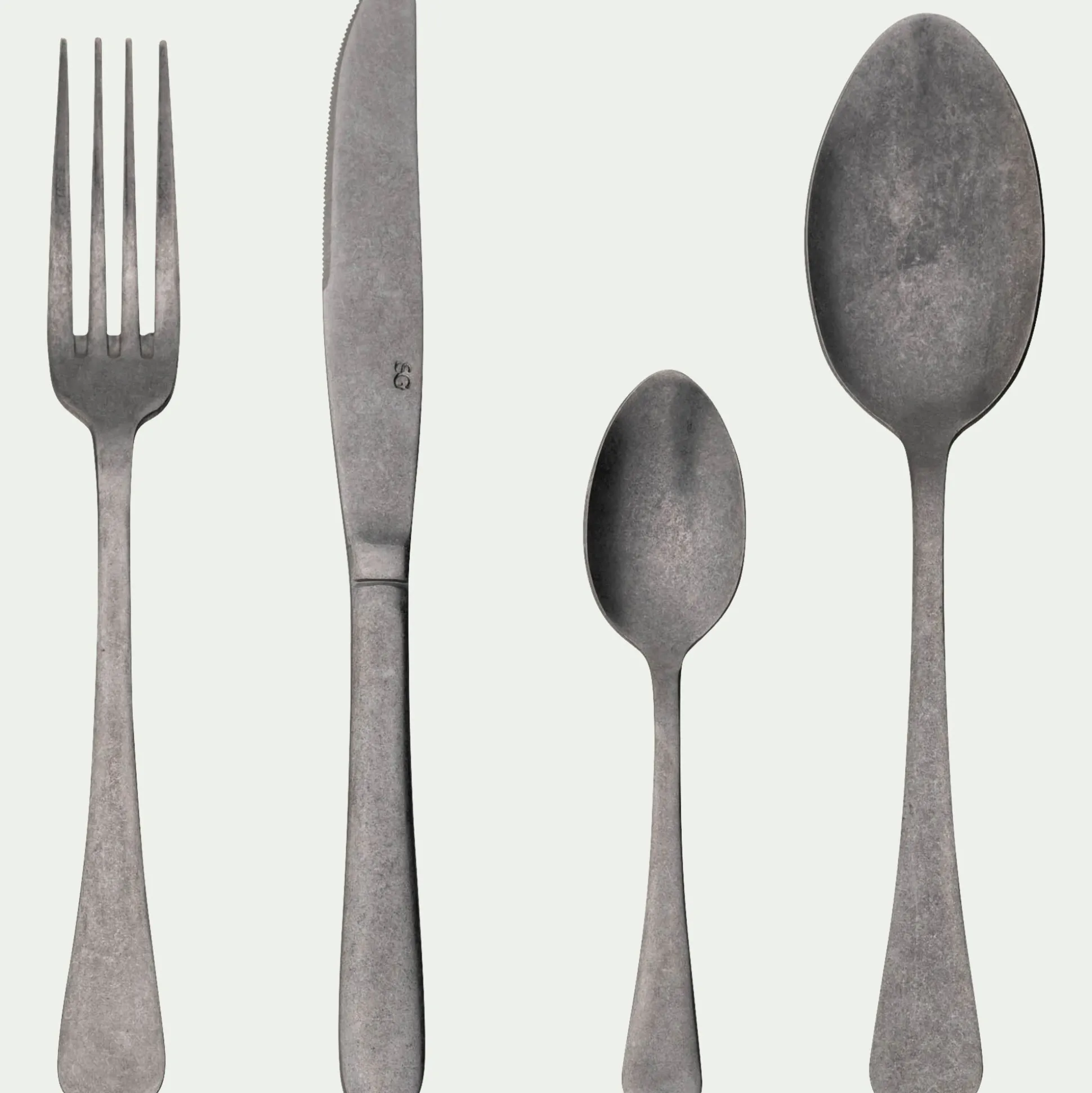Sublimez vos repas avec cette ménagère 16 pièces au style affirmé et intemporel. Composée de 4 fourchettes, 4 couteaux, 4 cuillères à soupe et 4 petites cuillères, elle séduit par son design épuré et sa finition gris vieilli au rendu authentique. Confectionnés en acier inoxydable, ces couverts allient robustesse et originalité pour une table à la fois moderne et pleine de caractère. Ils s’invitent aussi bien au quotidien que lors de vos plus beaux dîners.