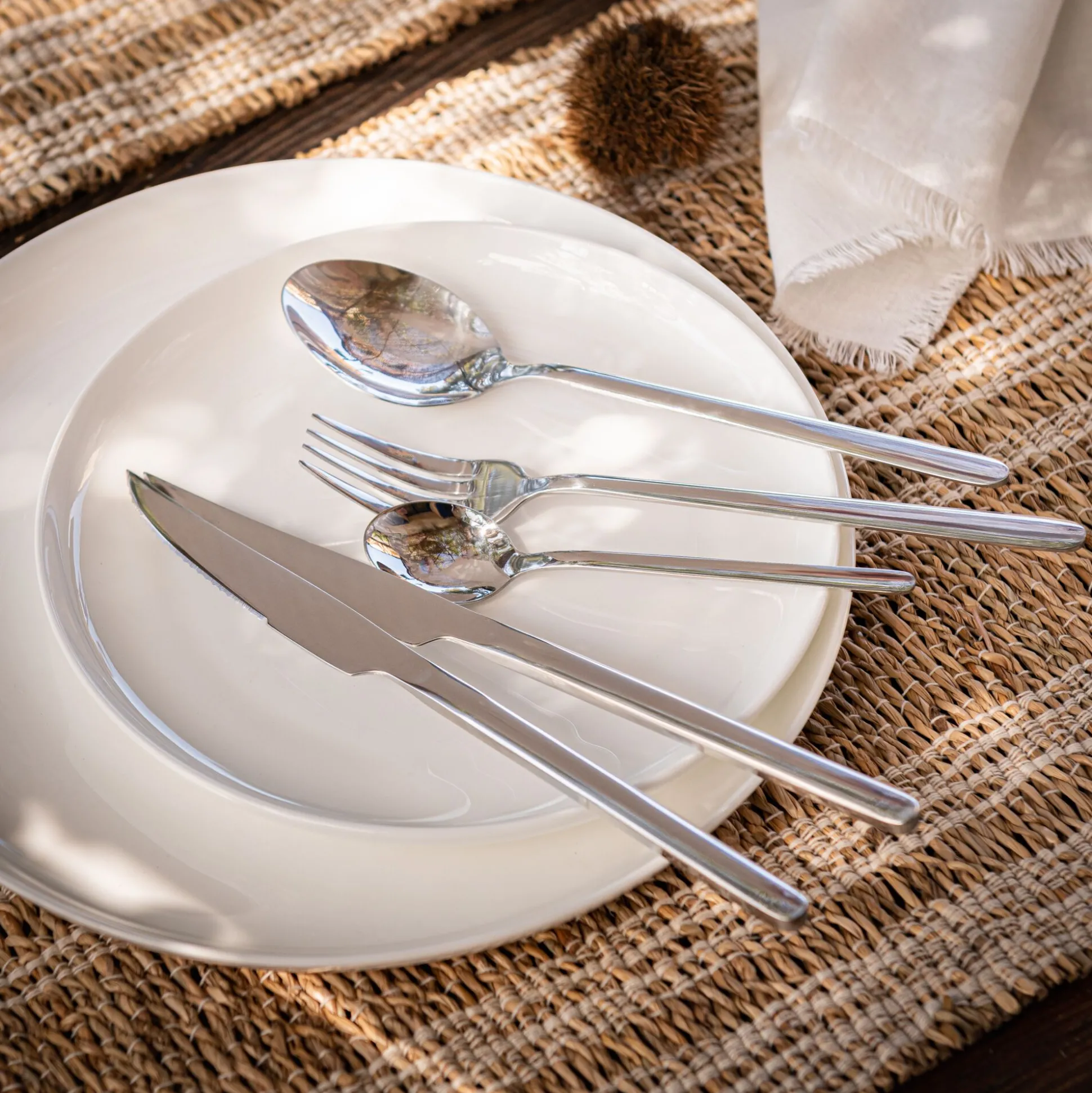 Optez pour une ménagère 24 pièces design, dont les courbes rondes viennent accentuer la gourmandise de vos plats. Les couverts Acana présentent des courbes douces qui apportent une touche moderne au dressage de votre table. Ces couverts argentés mêlent fourchettes, couteaux, cuillères à soupe et cuillères à dessert. Du salé au sucré, toutes vos recettes seront pleinement dégustées à l’aide de ces 24 couverts en inox.