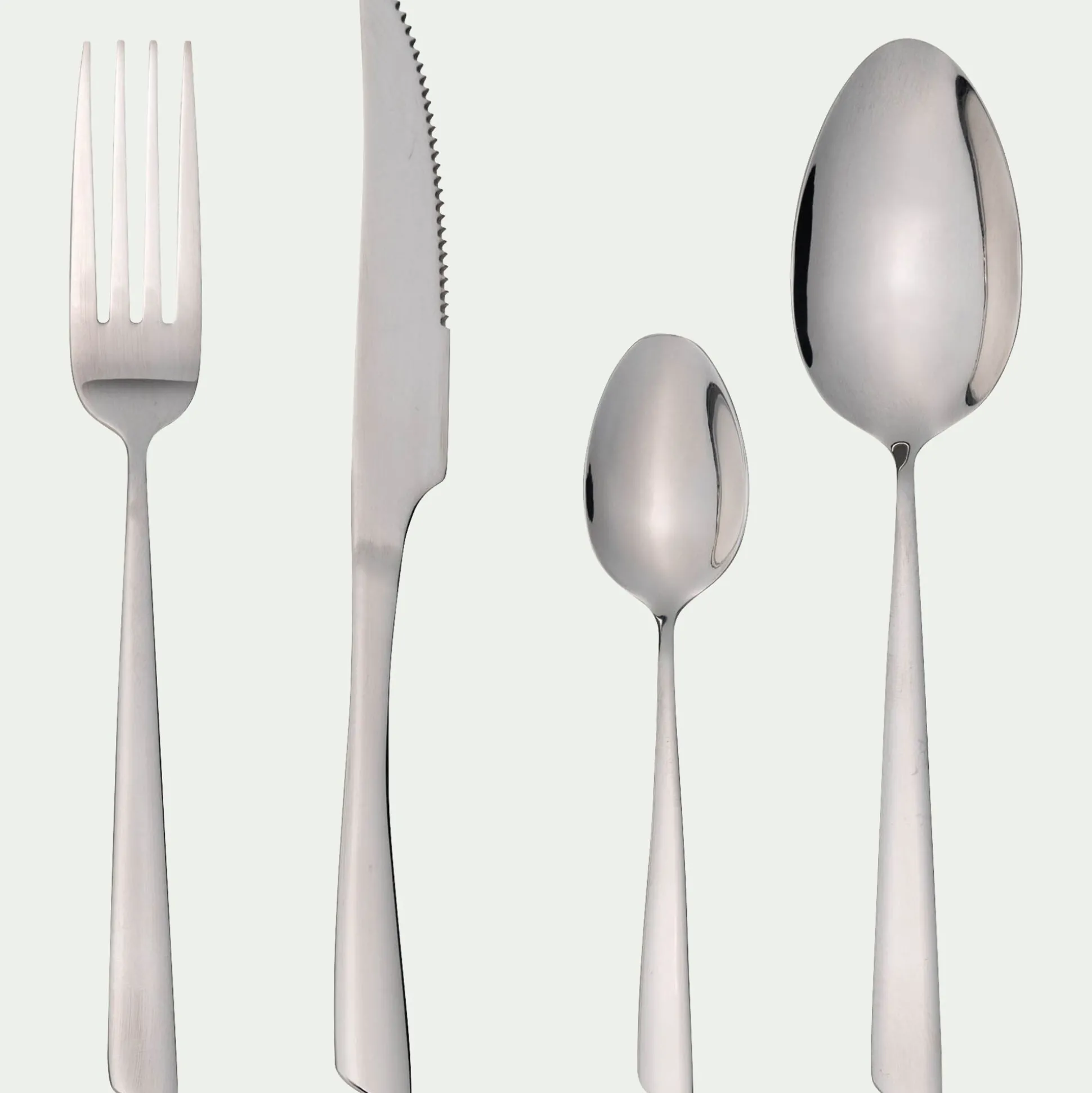De jolis assortiments de couverts se composant de fourchettes, couteaux, cuillères et petites cuillères, pour chaque plat de votre repas. Sublimez votre dressage de table avec ces couverts, accompagnés de belles assiettes et de jolis verres, ainsi que de belles serviettes, afin d’obtenir une ambiance chaleureuse et raffinée.