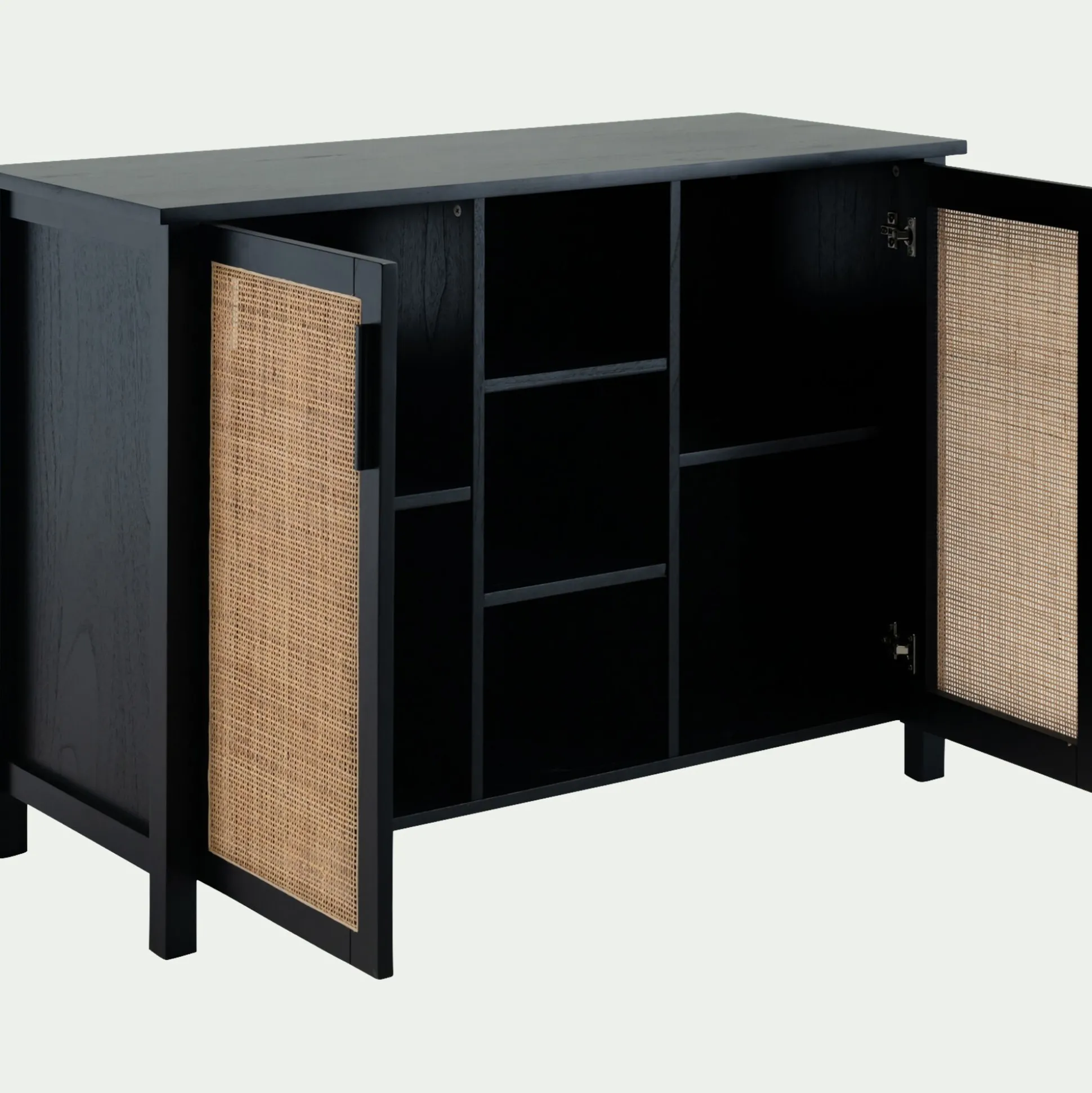 Meuble sous-vasque double en bois de cèdre et 2 portes en cannage – L120cm