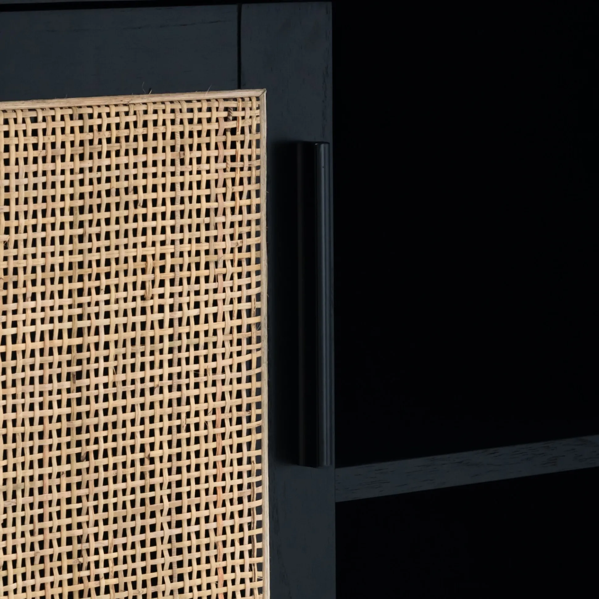 Salle de bain en bois noir et cannage