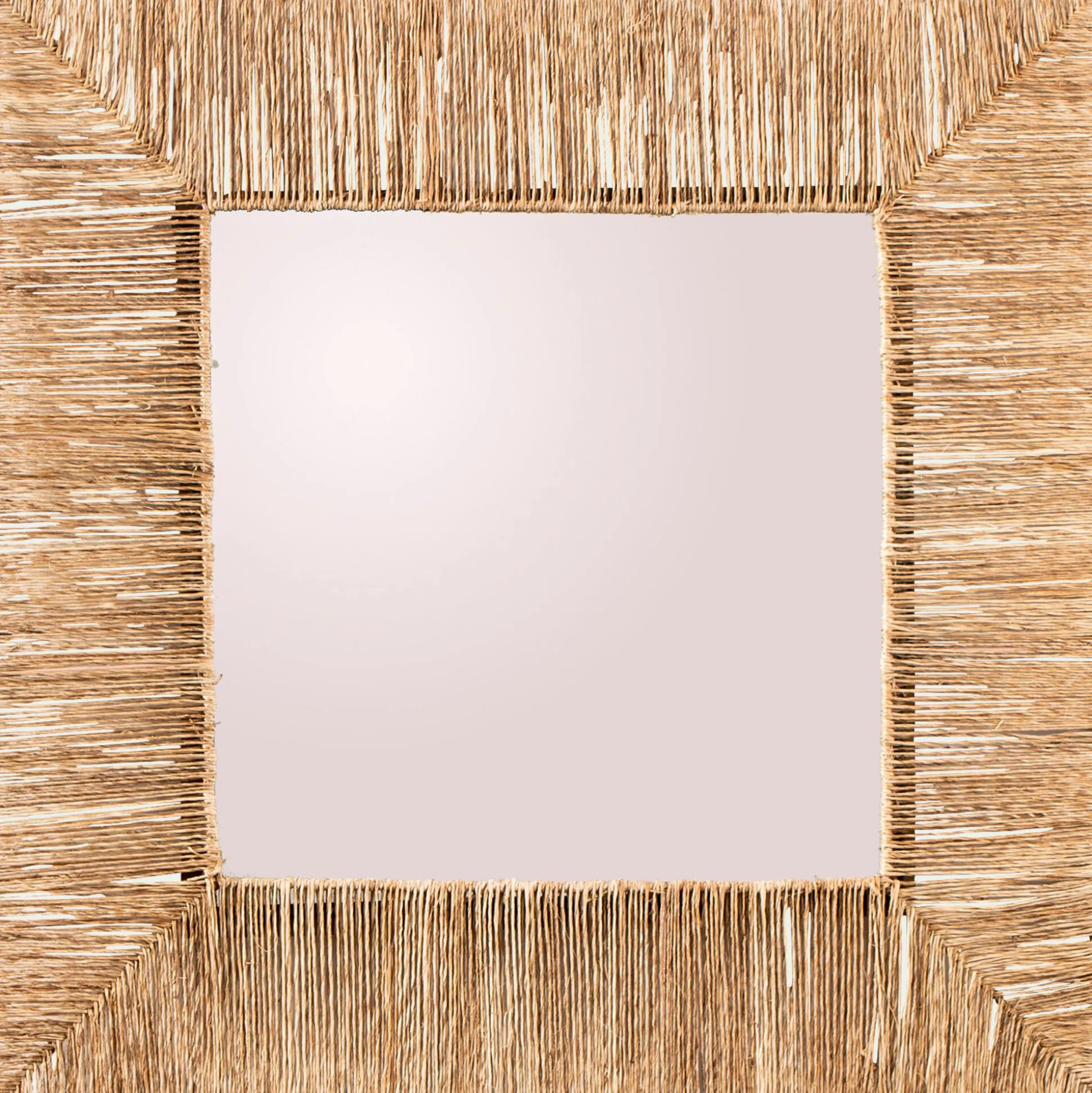 Décorez les murs de votre chambre ou de votre salon avec un miroir à suspendre. Au-delà d’être des objets déco intemporels, les miroirs permettent d’agrandir visuellement la pièce et de l’illuminer. Le miroir déco Vendres arbore une structure carrée faite en bois et métal. Le jonc de mer, des fibres dorées et résistantes, vient ensuite s’entrecroiser sur la structure pour offrir ce tissage brut. Ce miroir carré mesure 76×76 cm. Seul ou en accumulation, il habille votre intérieur de son design rustique et de son reflet radieux.