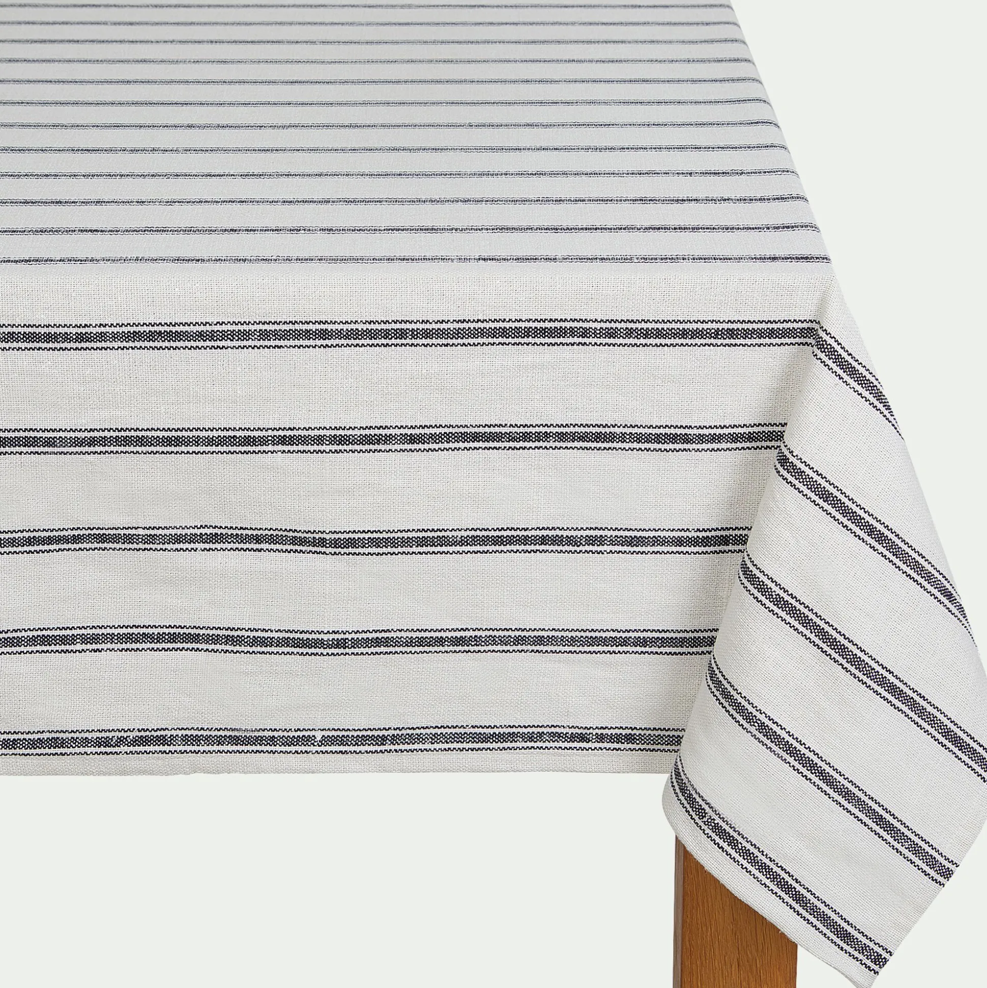 Blanc et noir. Le duo de couleur idéal qui contraste la nuit et le jour. Cette nappe de table en lin et coton reflète l’esprit méditerranéen de la marque alinea. Intemporelle, elle s’inscrit dans un usage quotidien. Vous jouerez de ses lignes uniformes, pour un dressage raffiné.