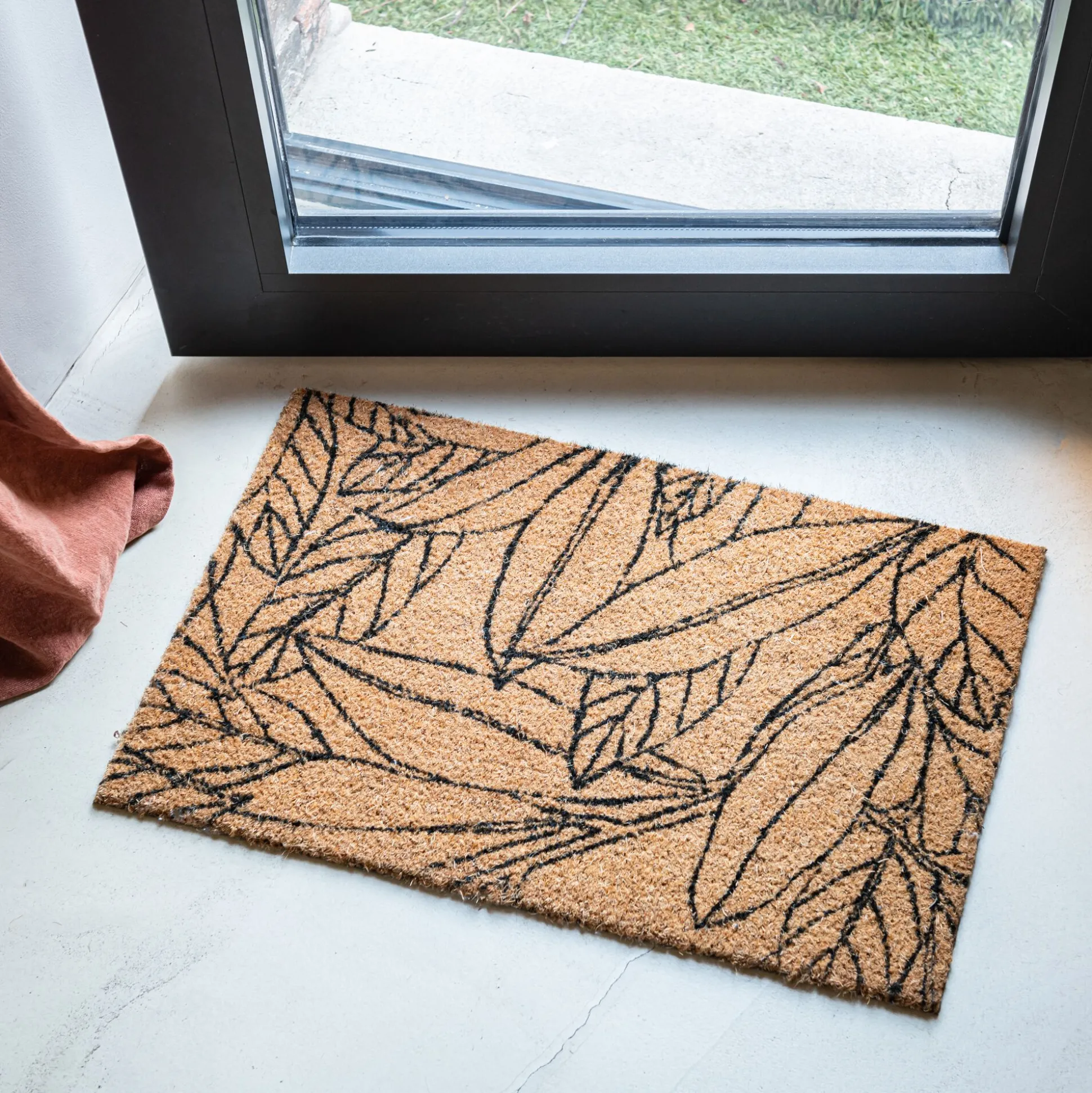 Paillasson en fibres de noix de coco et revers en vinyle à motifs laurier – naturel 80x50cm