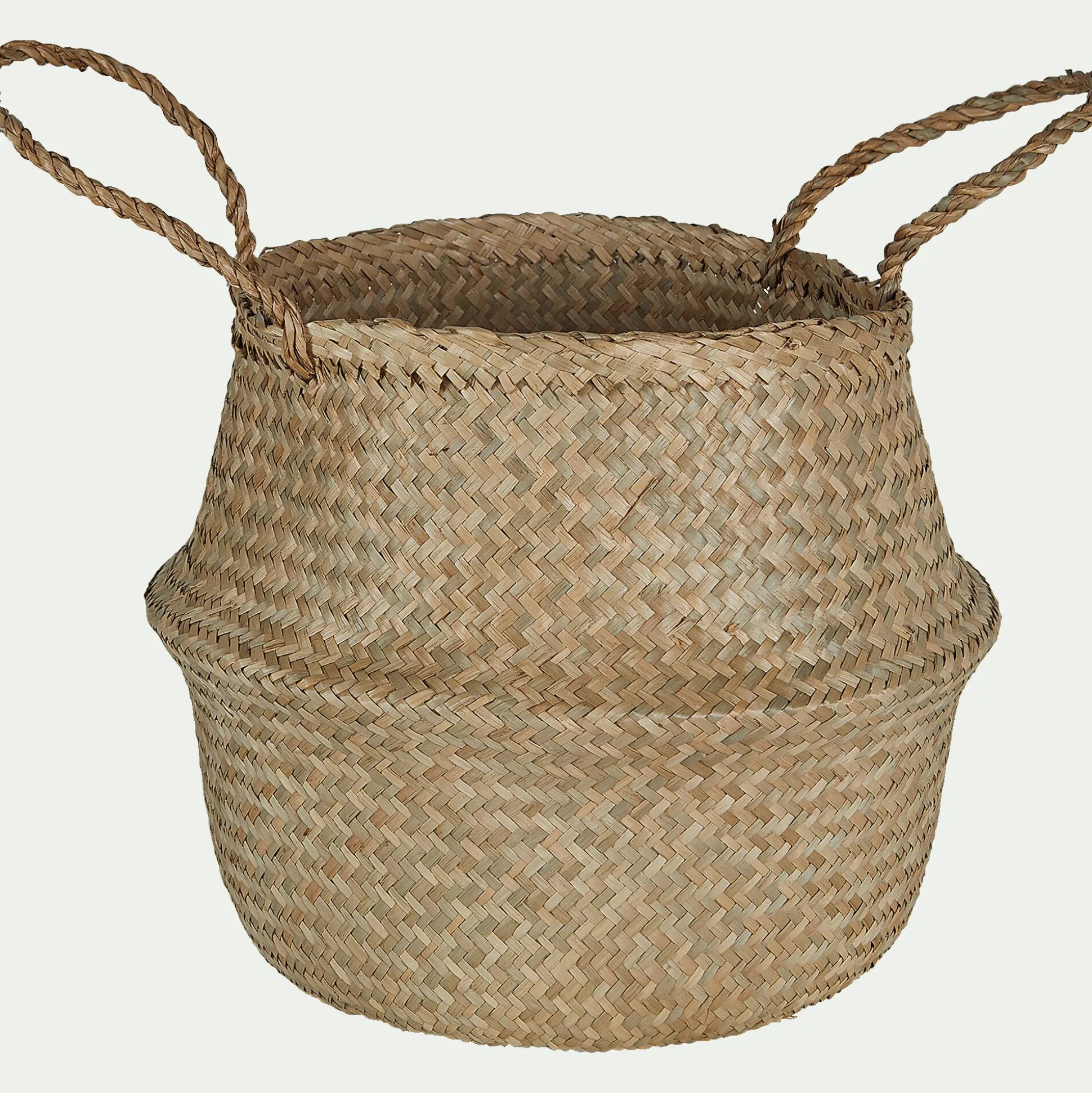 Un joli panier déco réalisé en jonc de mer naturel pour embellir votre intérieur et ranger vos affaires. Tressé minutieusement pour créer un beau motif clair et exotique qui vous transporte en bord de mer, sur des plages de sable blanc. Il est muni d‘anses pour vous permettre de le transporter facilement et se plie en deux afin de réduire la hauteur du panier. Un élément de décoration distingué et fort utile.