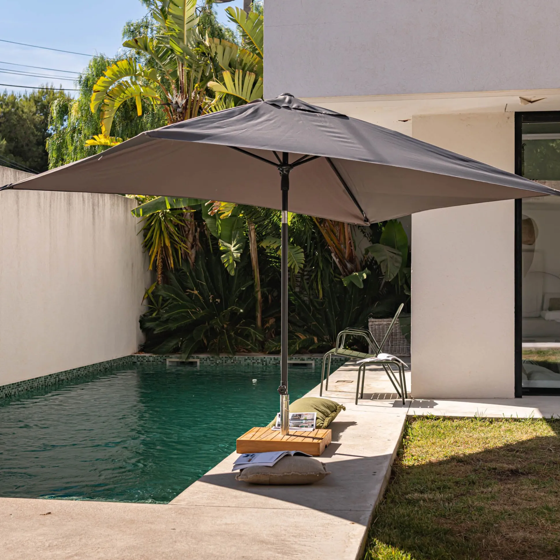 Parasol droit en tissu et métal 200x300cm – gris