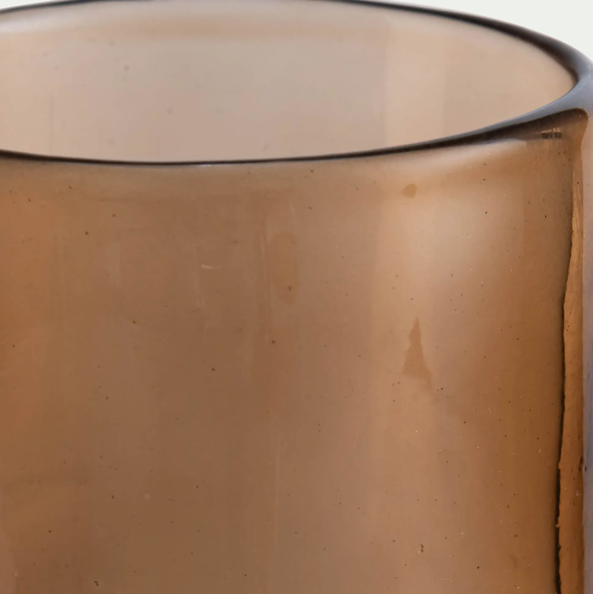Ce petit photophore mise sur la simplicité pour mieux capter la lumière. En verre teinté dans notre coloris brun rustrel, il diffuse une lueur chaleureuse une fois une bougie placée en son cœur. Sa silhouette ronde et minimaliste (10 cm de diamètre) en fait un bel objet à poser sur une table ou une commode, seul ou accompagné d’autres photophores. Une touche discrète mais précieuse pour créer une ambiance feutrée, entre élégance et simplicité.