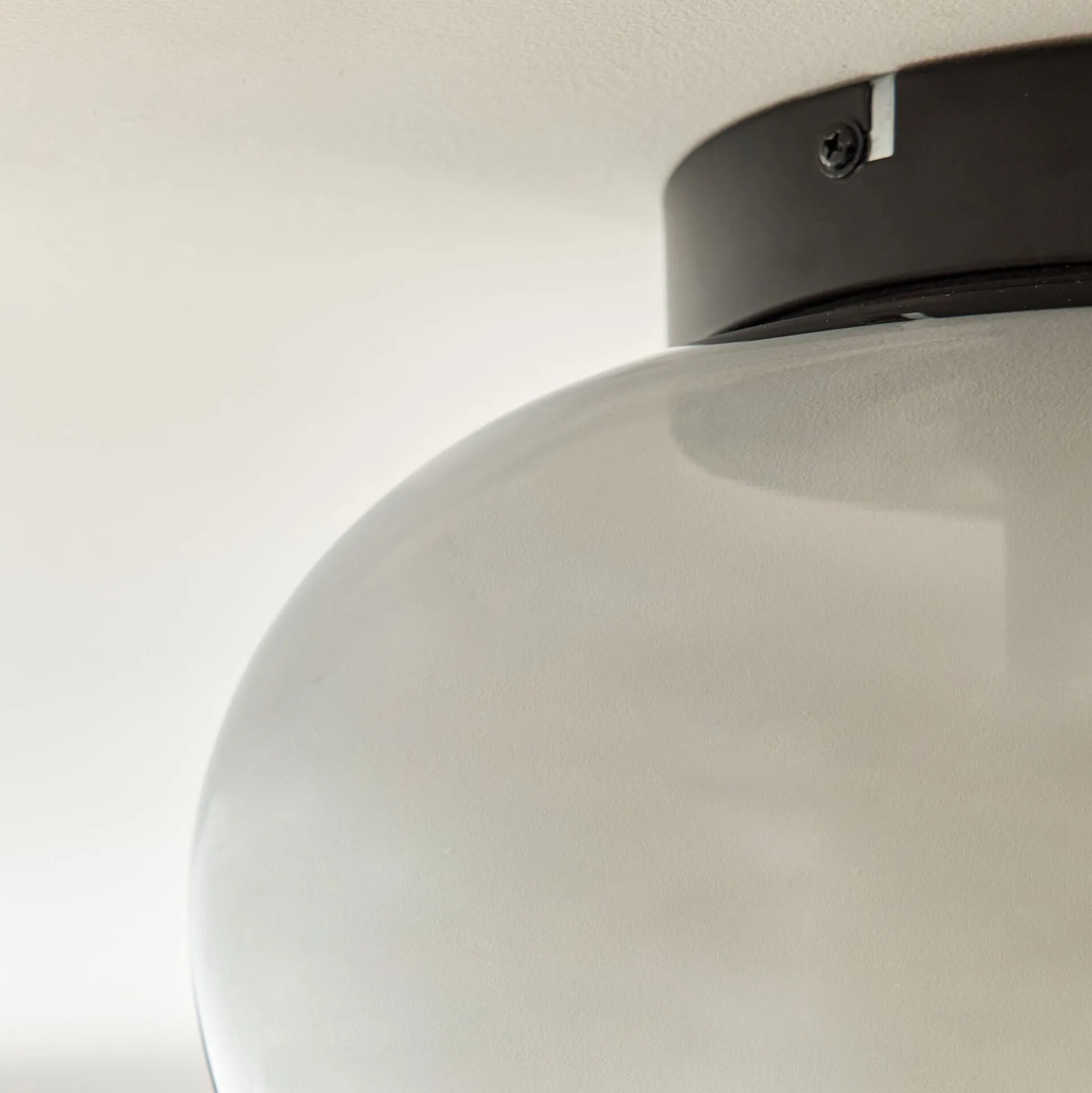 Pavillon plafond en acier noir et abat-jour fume en verre.