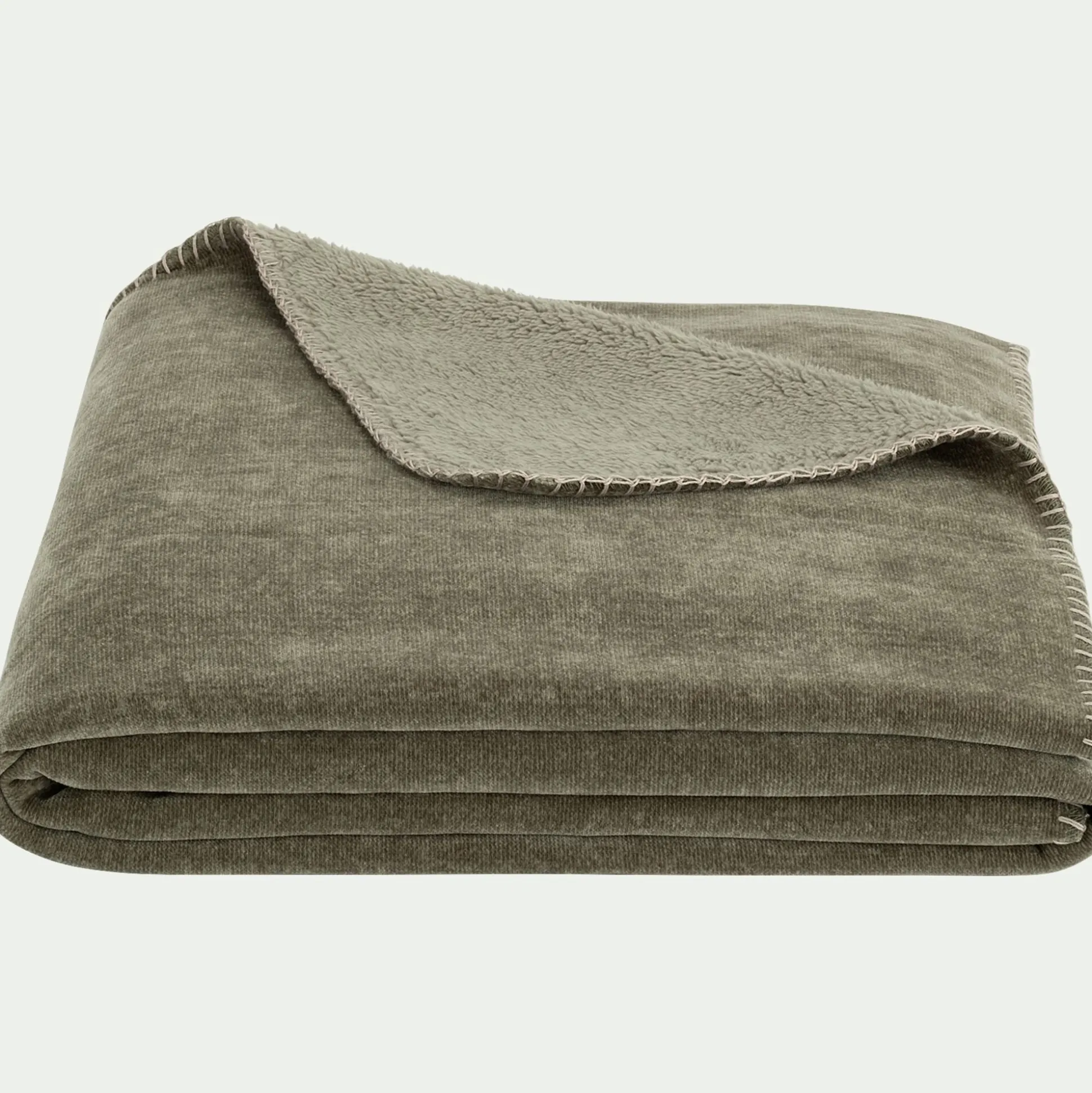 Le plaid Elise de 130×170 cm joue la carte du confort avec ses deux textures complémentaires. Sur le recto, un effet chenille au toucher velouté, tandis que le verso dévoile une imitation fourrure toute douce. Dans son coloris vert, à la fois apaisant et chaleureux, il apporte une touche de douceur à la déco et un maximum de chaleur pour l’hiver.