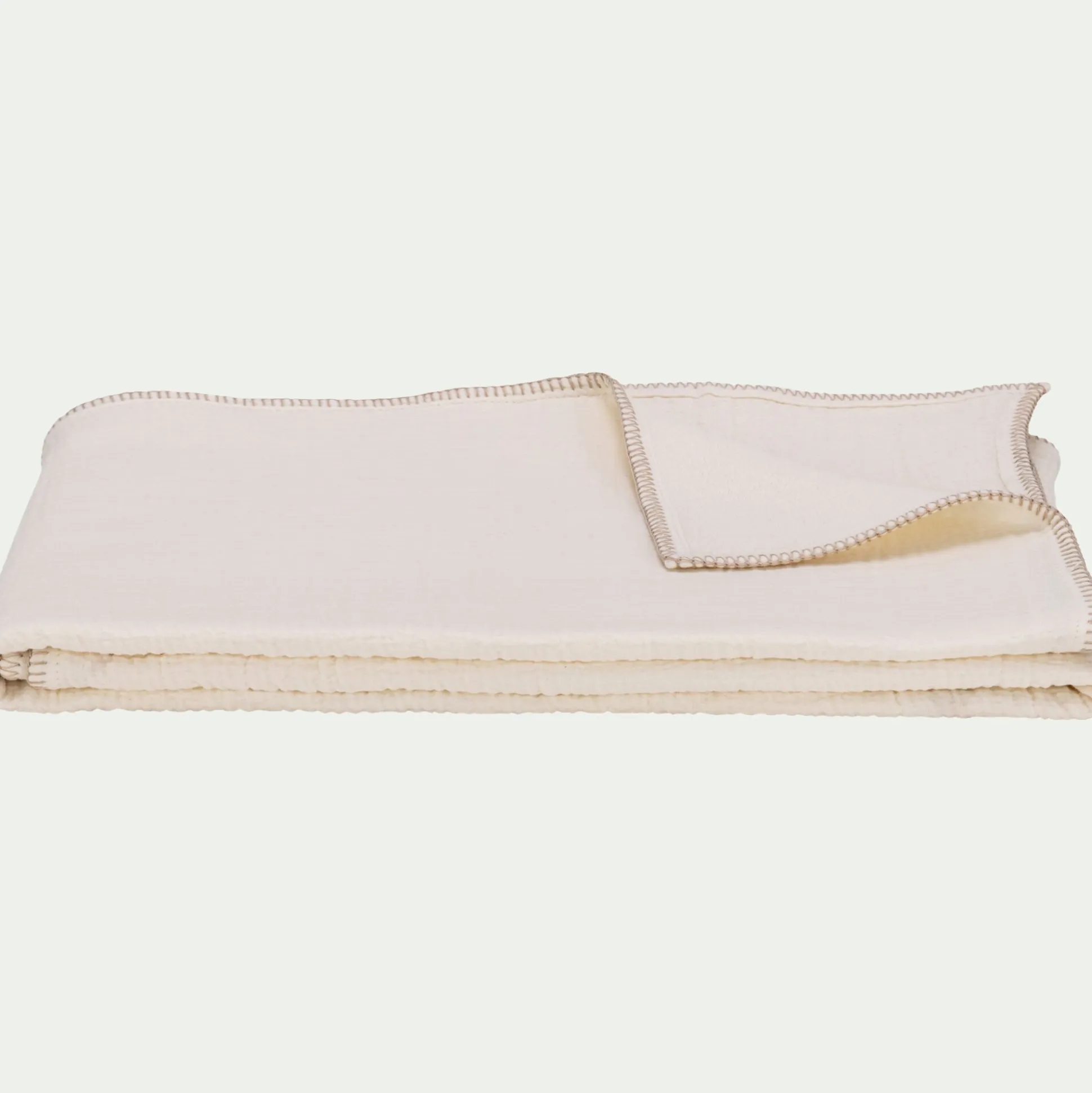 Le plaid Kali est une très belle pièce, parfaite pour décorer votre intérieur et vous tenir chaud lors des soirées un peu fraîches. Dans notre coloris blanc ventoux, ce plaid de 130×170 cm évoque la pureté des paysages pierreux. Confectionné en triple gaze de coton, il offre une douceur inégalée pour des moments de confort absolu. La finition point de cheval, qui contraste joliment avec le blanc, apporte une note raffinée sur tout le pourtour.