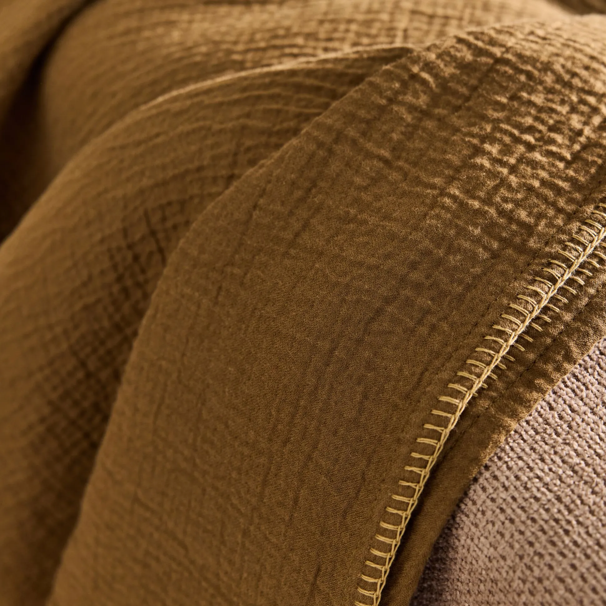 Le plaid Kali est une très jolie pièce, idéale pour décorer votre intérieur et vous tenir chaud lors des soirées un peu fraîches. Dans un beau vert, ce plaid de 130×170 cm évoque la pureté des paysages et de sa garrigue verdoyante. Fabriqué en triple gaze de coton, il offre une douceur inouïe pour des moments de confort absolu. Sa finition point de cheval, qui contraste joliment avec le vert, apporte une note raffinée sur tout le pourtour.