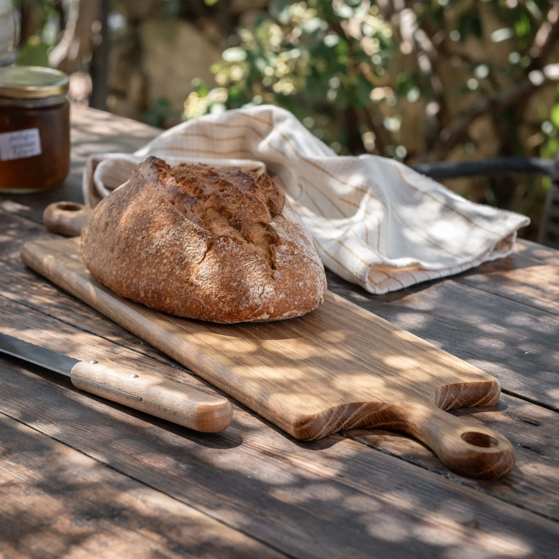Cette planche à pain en chêne est idéale pour découper votre pain et le présenter à table. Découpez tous types de pain et disposez les tranches sur cette planche de 61,59 x 15 cm. Son matériau lui permet d’être résistante aux chocs et d’avoir une longue durée de vie afin de pouvoir l’utiliser pendant de longues années. Cette planche pourra donc vous accompagner lors de nombreux repas, vous n’aurez qu’à la déplacer à l’aide de ses deux poignées et à la placer sur votre table lors de repas, d’apéritifs ou de petits-déjeuners. De plus, cette planche est élégante et apportera du style à votre table en lui donnant un côté naturel et authentique.