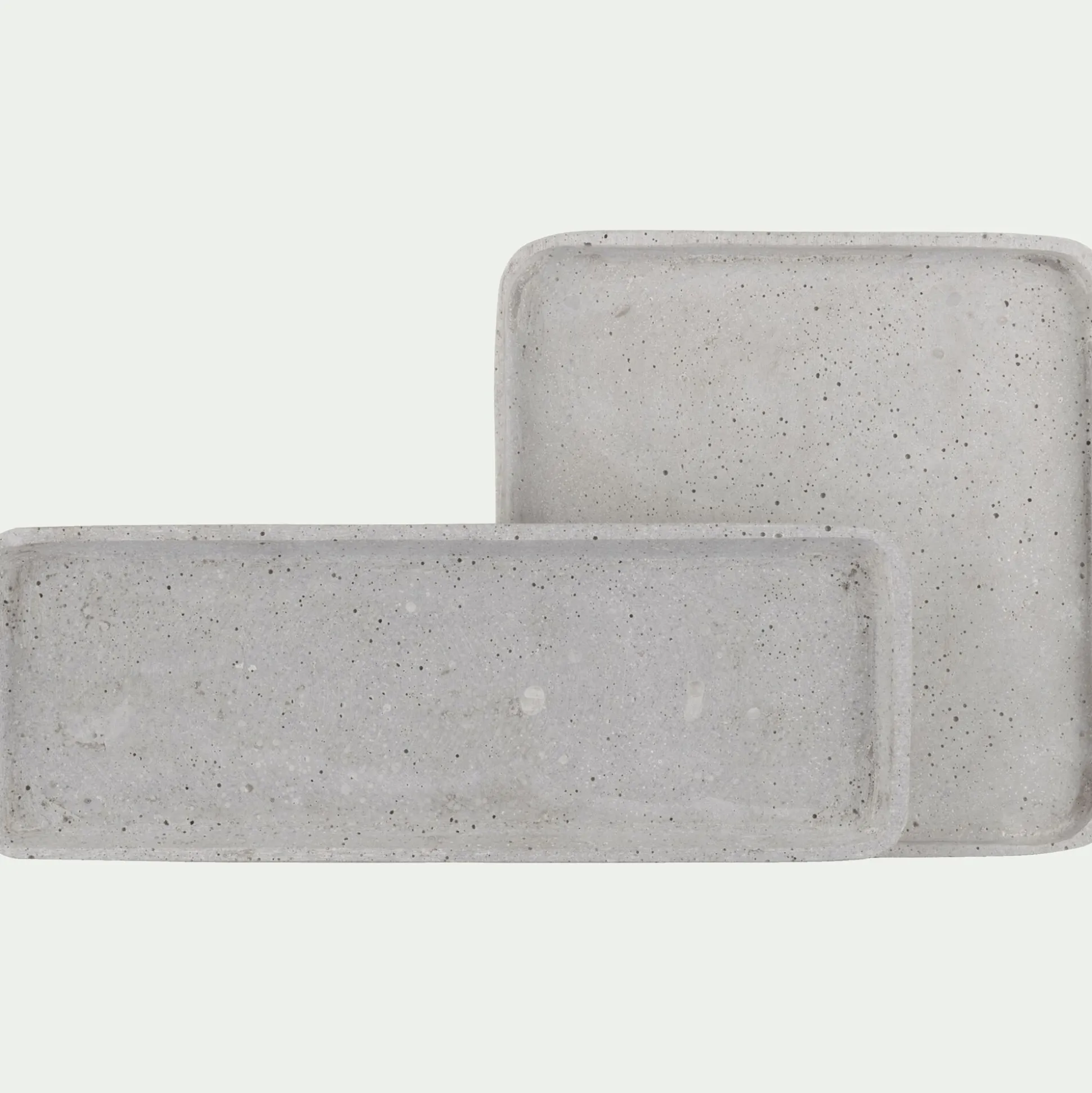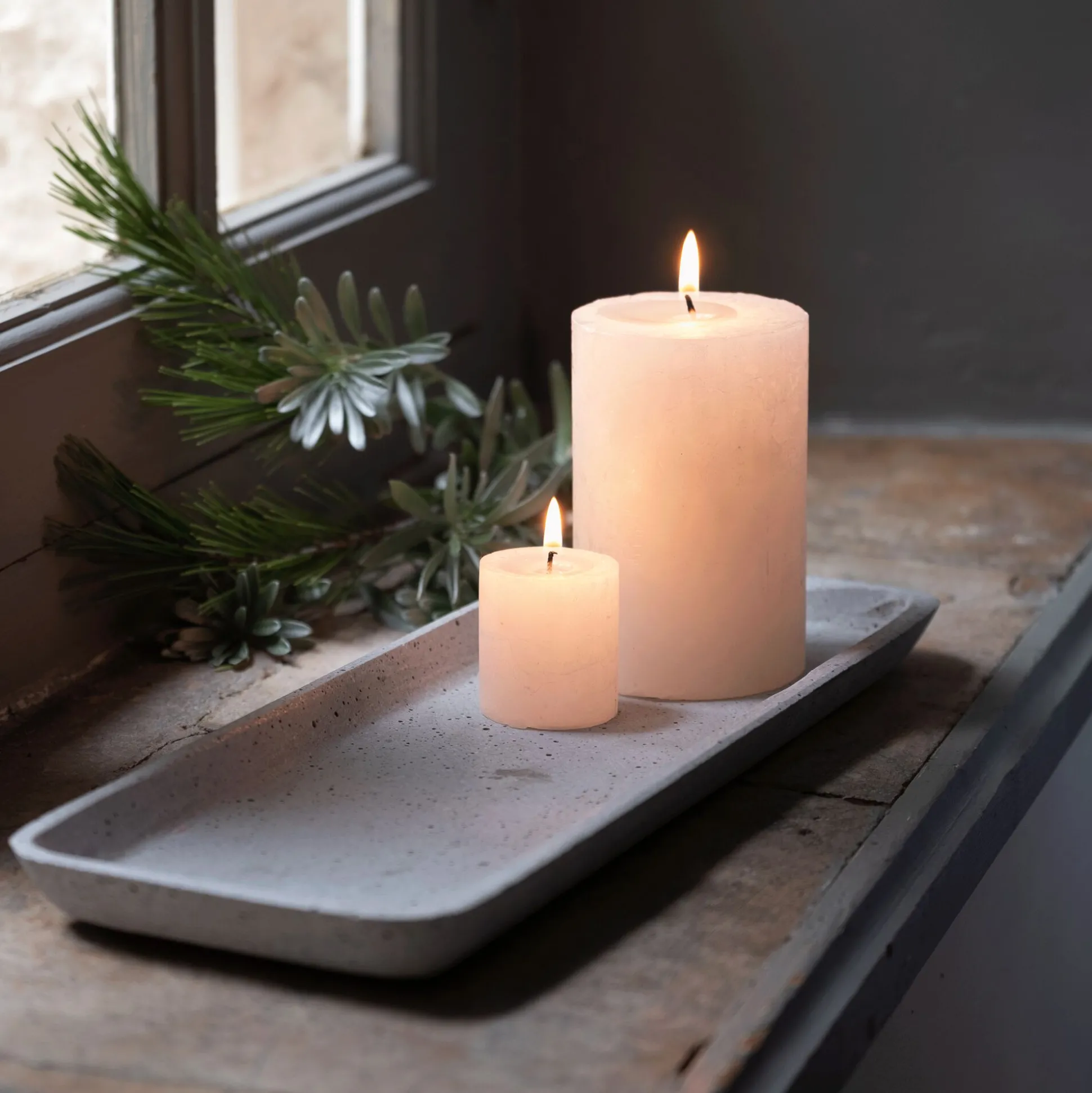 Différenciez-vous avec un plateau rectangulaire en imitation béton pour habiller votre décoration. Créez un chemin lumineux grâce une lignée de bougies de différentes formes. Une fois la nuit tombée, instaurez une atmosphère chaleureuse grâce au plateau Calcis.