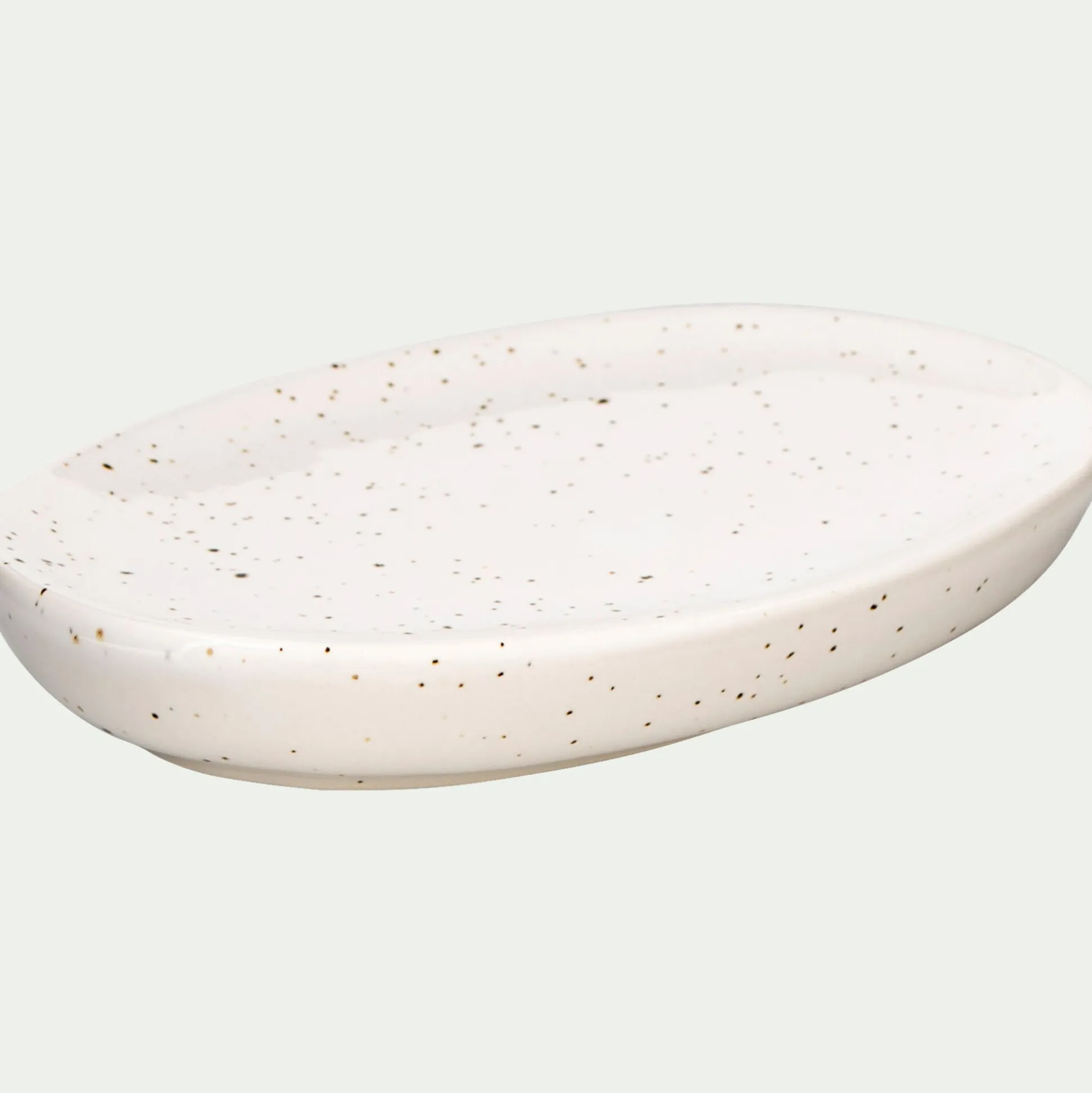 Fabriqué au Portugal selon le savoir-faire local, ce porte-savon en céramique convient parfaitement pour une décoration simple et lumineuse. Dans la salle de bain, placez-le près du lavabo ou bien dans votre douche. Grâce à son rebord haut, il tient en place votre pain de savon et recueille l’eau. Ainsi, votre savon solide à une place attitrée, un détail qui participe grandement à un intérieur organisé. Ce porte-savon blanc appartient à une gamme entièrement fabriquée en céramique. Associé-le aux autres accessoires de salle de bain pour une pièce harmonieuse où chaque détail compte.