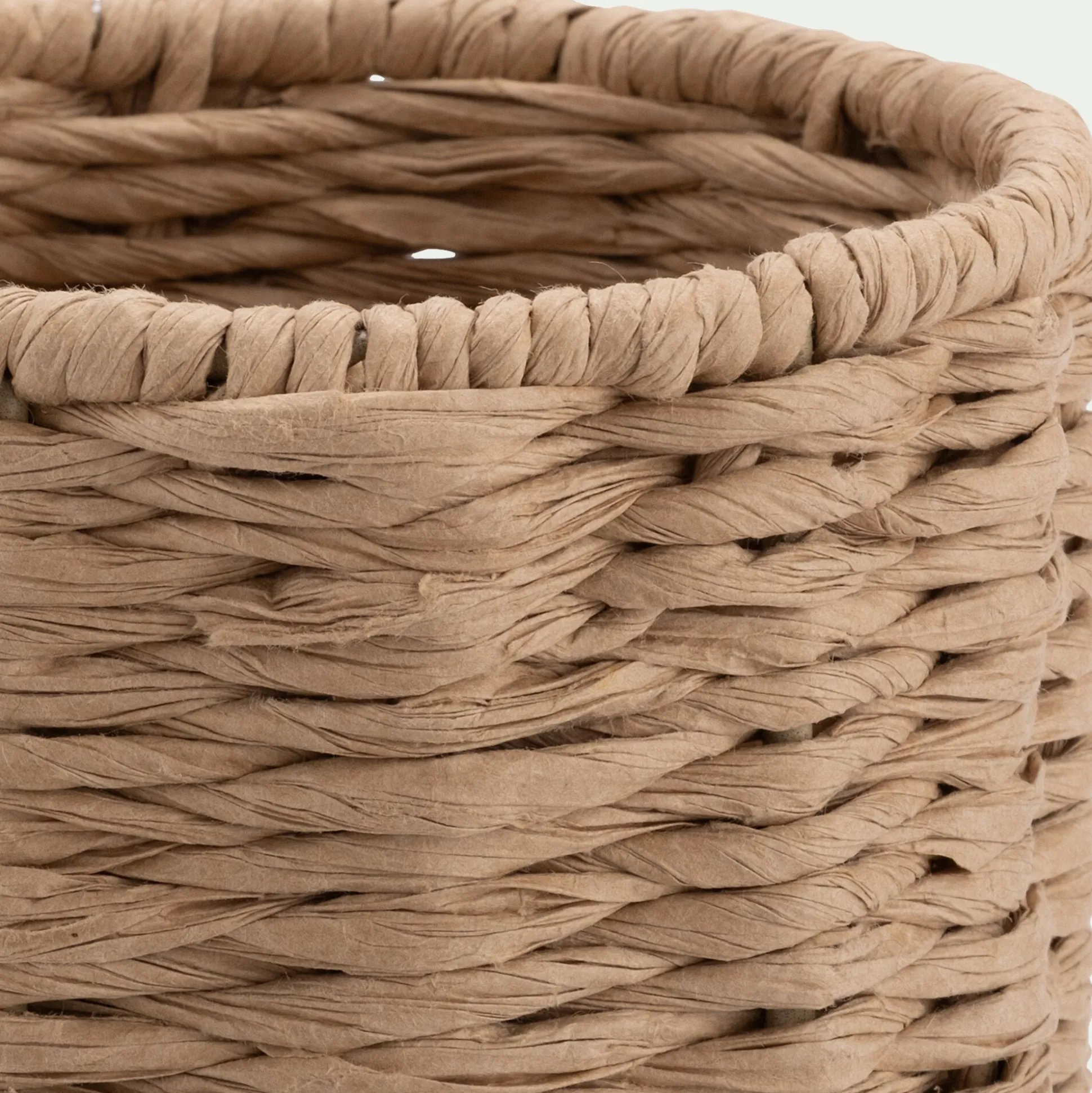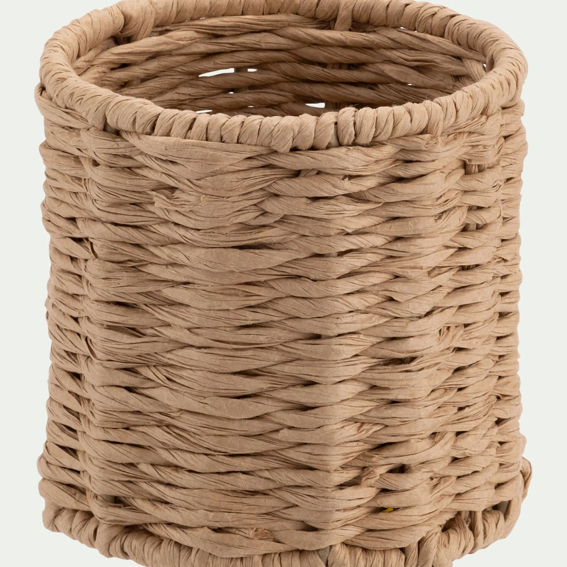 Ce pot à crayon rond mise sur un tressage en papier pour un rendu chaleureux et texturé. Avec son coloris naturel, il apporte une note authentique au bureau tout en gardant stylos, feutres et ciseaux à portée de main. Un accessoire de bureau simple et pratique, au charme discret.