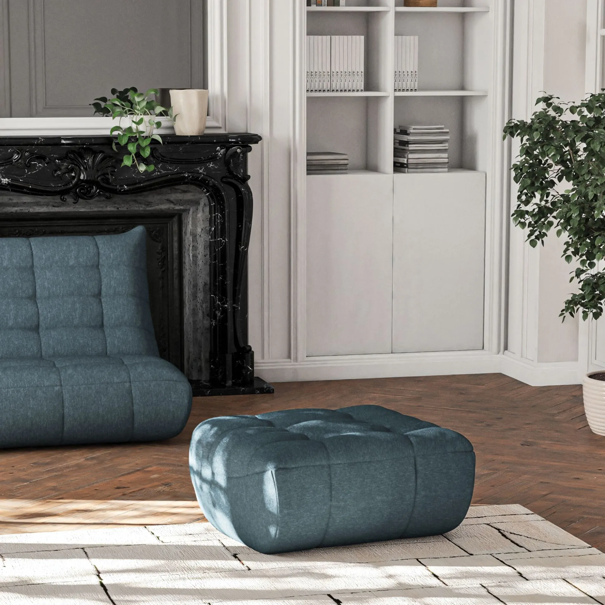 Ce pouf à tout pour plaire. Sa forme aux rondeurs généreuses apporte une ambiance chaleureuse et un confort douillet. Son esthétisme donnera un style tendance à votre salon d’intérieur. Par sa couleur bleu, il pourra se marier à tous les styles de décoration. Fabriqué par des mains expertes du métier, cet élément est intégralement conçu en Europe. Parce qu’alinea a à coeur de vous satisfaire, cette gamme propose un large choix d’éléments, rendant celle-ci modulable à souhait. Vous pourrez ainsi mixer les tissus, les formes et les couleurs à votre guise et vous permettra de faire varier et faire vivre votre salon à votre image.