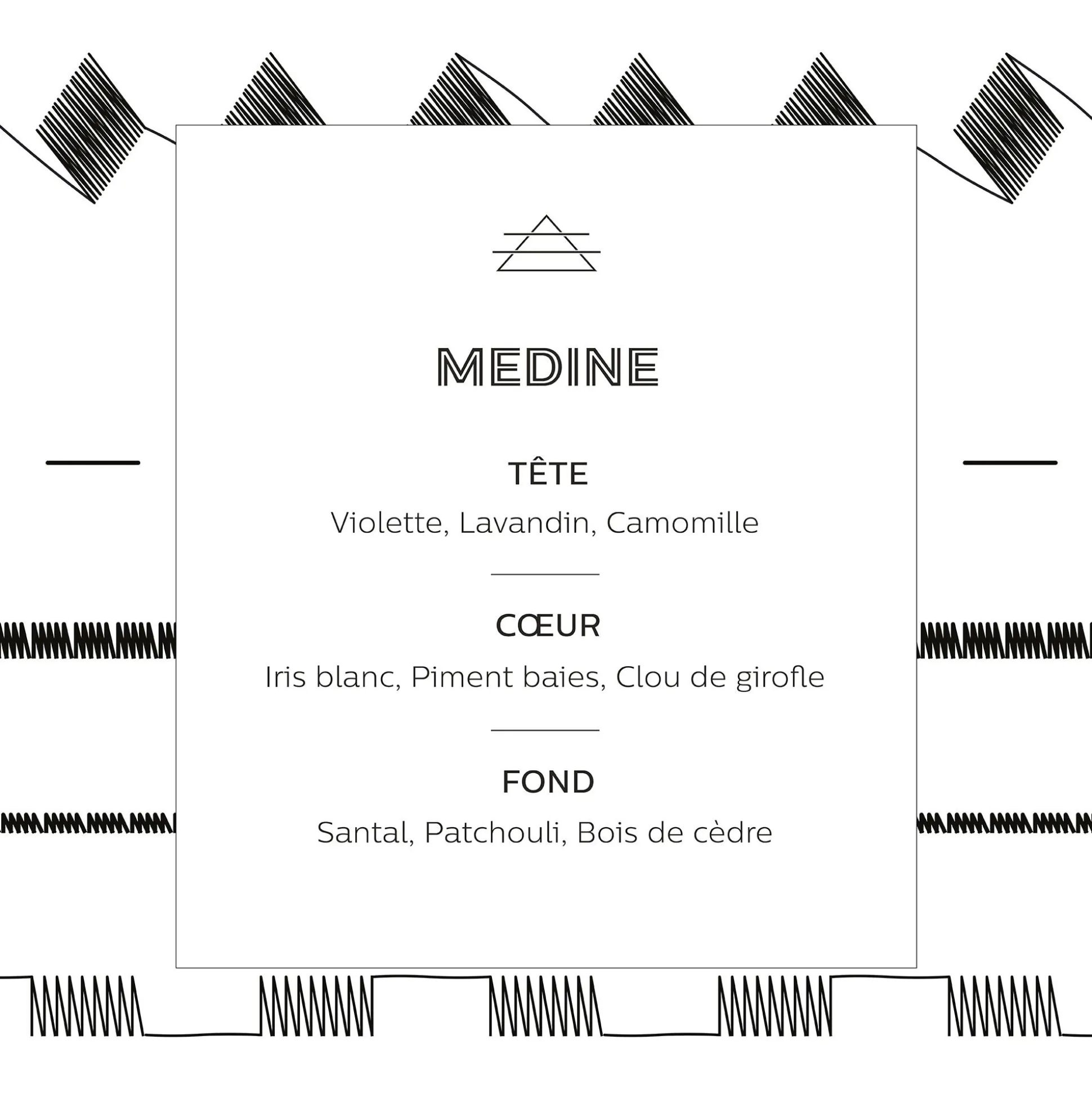 Cette recharge pour diffuseur de parfum vous offre la possibilité de profiter du doux parfum de cèdre et d’iris blanc rappelant la quintessence de la Medina au lever du jour. Fraîche et épicée, cette fragrance dispose de notes fleuries stimulées par du piment et des clous de girofle qui viennent se mêler à des odeurs plus boisées de patchouli, santal et bois de cèdre.