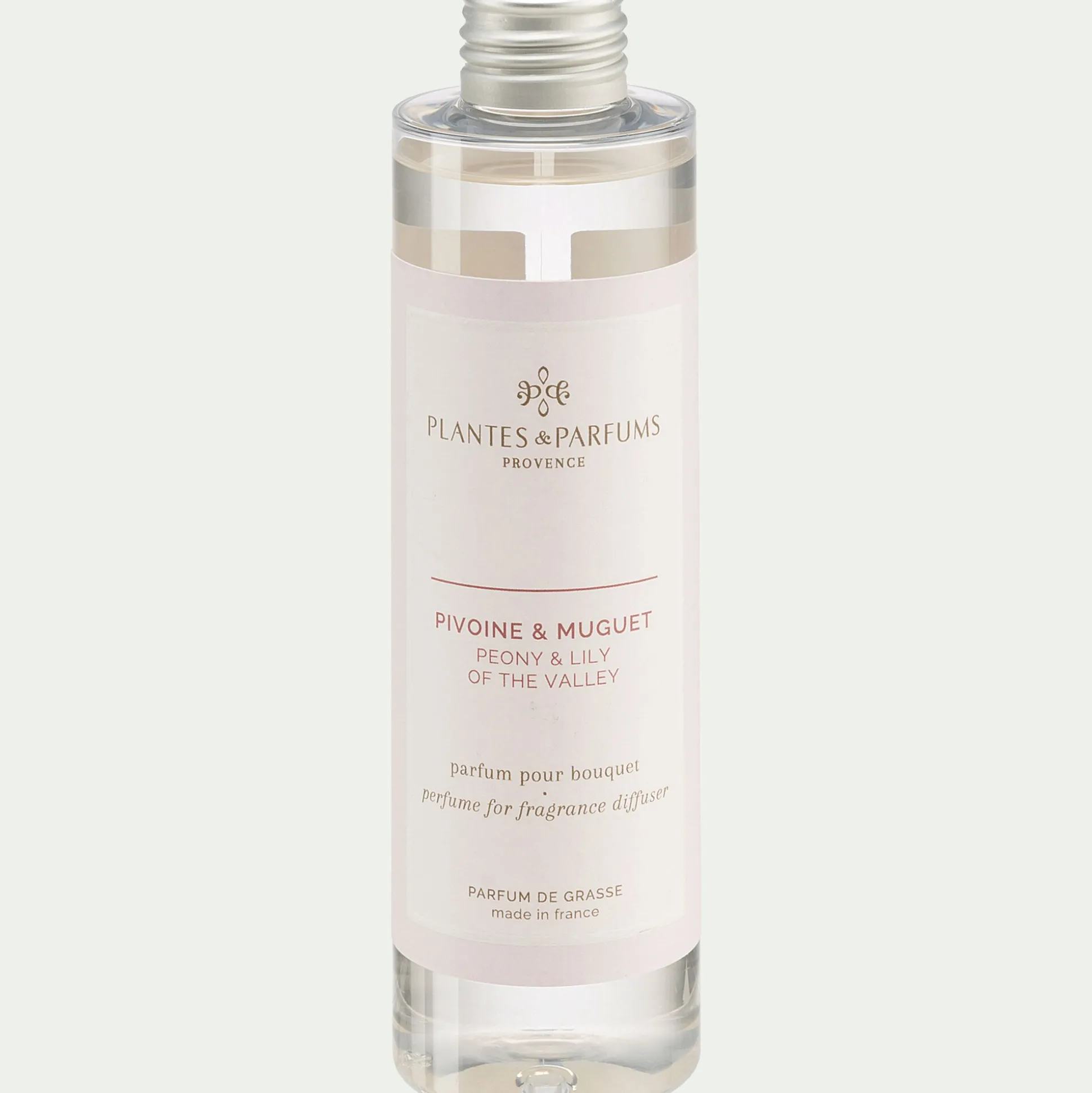 Prolongez ce moment suspendu au sein d’un jardin printanier grâce à la recharge pour diffuseur Pivoine Muguet, un parfum au coeur tendre de par ses notes douces et sucrées. Le cassis, souvent associé aux fragrances de luxe, apporte à la composition un côté amer et boisé qui s’équilibre avec le muguet, petite fleur blanche à l’effluve claire et légère, presque fragile. Les notes de coeur composées de pivoine et de rose amènent des arômes citronnés et croquants qui dynamisent l’ondée langoureuse du muguet. Cette promenade au sein d’un éden fleuri prend fin dans une atmopshère plus pénétrante : musc et osmanthus offrent une odeur complexe, aussi bien miellée que cuirée, évoquant une confiture d’abricots encore chaude. Une fragrance florale mais pourtant gourmande qui convient parfaitement à la période estivale.