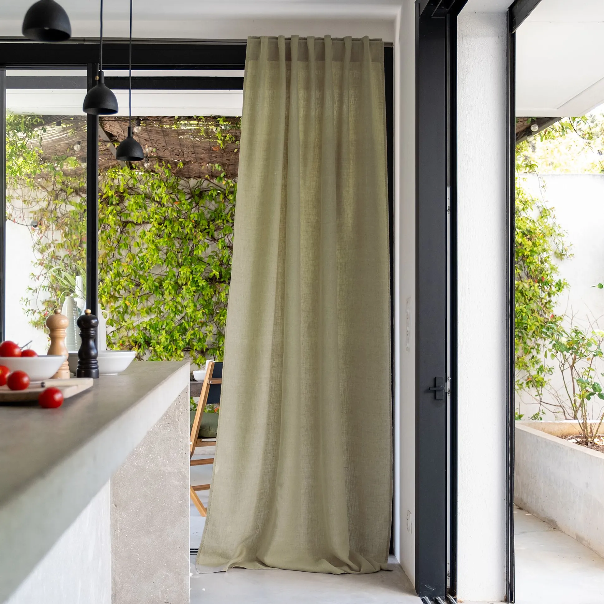 Le rideau Vinon tient son nom d’un agréable petit village au cachet provençal. Niché dans les gorges du Verdon, il se distingue par la nature opulente qui l’entoure. Ce rideau en lin lavé s’installe à vos fenêtres comme un petit bout de ce beau paysage. Tissé en fibres naturelles, ce rideau à passants cachés arbore notre coloris vert olivier, une nuance apaisante qui évoque la nature, mais aussi la douceur de vivre. Ce rideau de 140×260 cm se distingue par une finition réalisée à la main : une surpiqure point plat en double fil qui vient souligner son drapé et apporter une touche d’élégance.