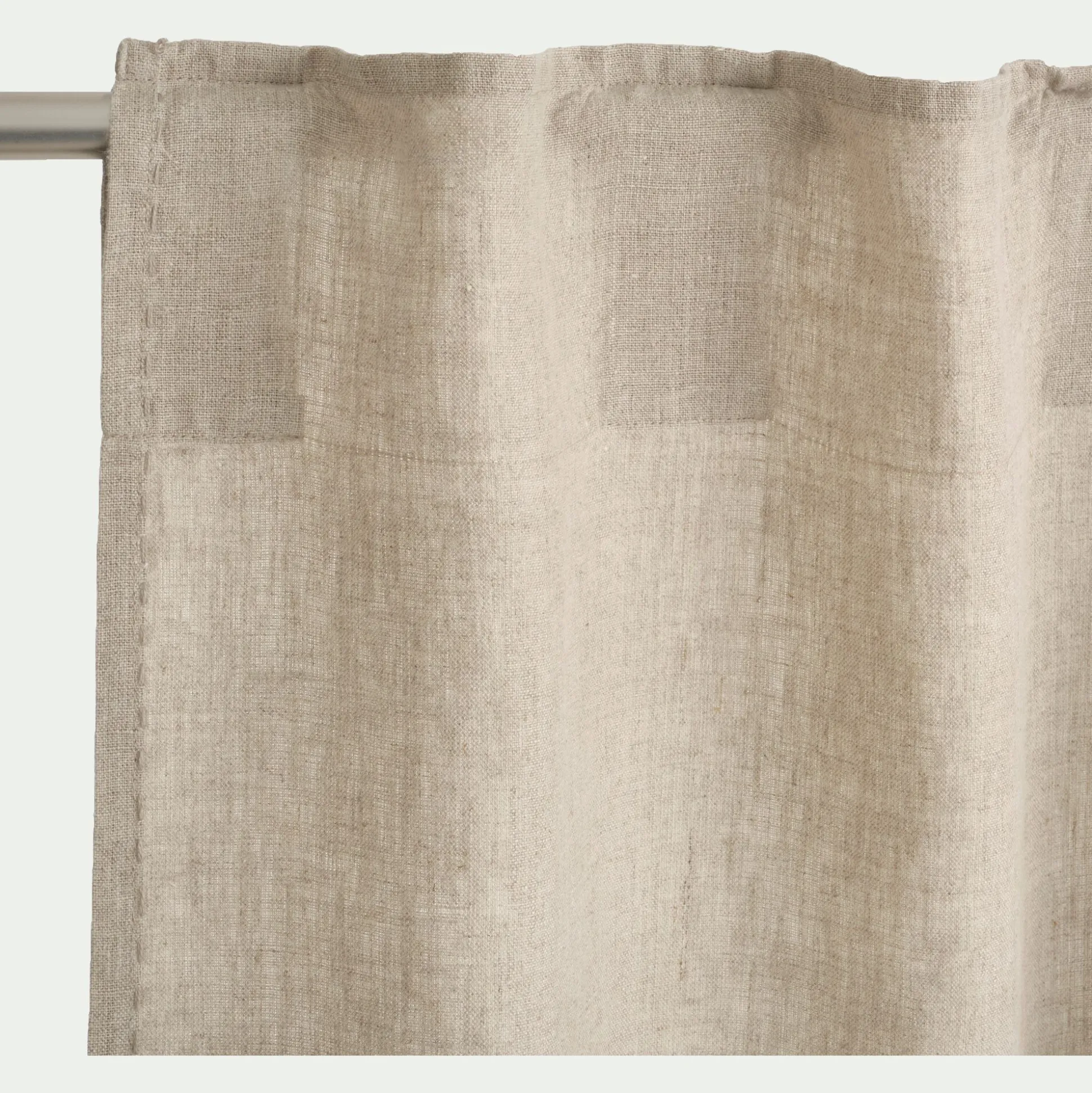 Sublimez vos fenêtres avec le rideau Vinon, un accessoire décoratif élégant à disposer sur une tringle dans le séjour ou encore dans la chambre. Ce rideau de 140×300 cm affiche un design simple et raffiné. Son étoffe en lin lavé apporte une belle texture à votre espace. Uni, ce rideau naturel exprime une modernité vaporeuse, idéal pour un intérieur accueillant et reposant. Cette belle patine beige est soulignée par une surpiqure, une finition minutieuse réalisée à la main.