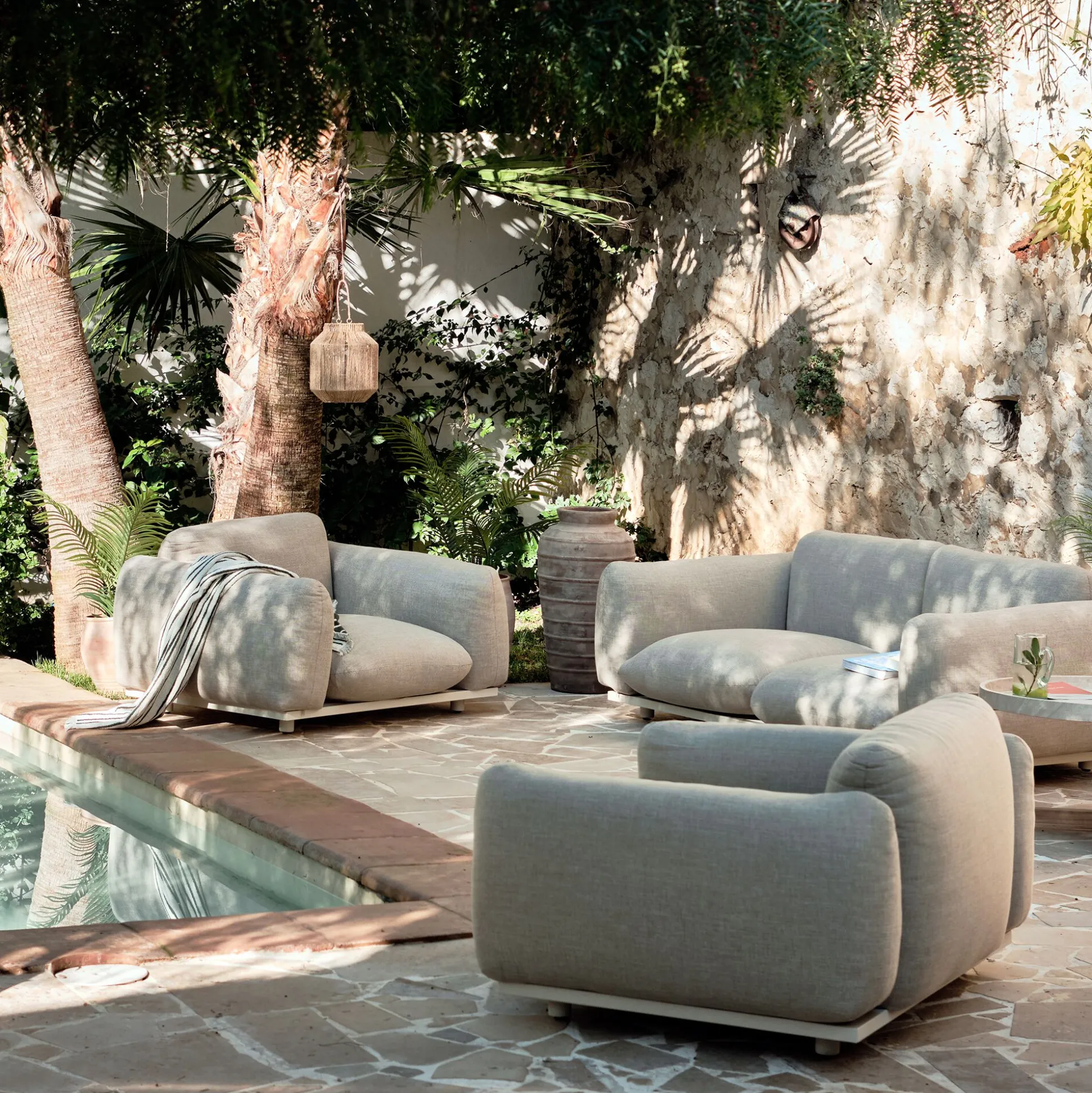 Avec le salon de jardin Monte Cristo, chaque moment passé dehors devient une invitation à la détente. Composé de deux fauteuils et d’un canapé 2 places, il séduit par ses assises profondes et ses coussins généreusement rembourrés. Son tissu premium, doux au toucher, adopte une teinte beige sable lumineuse et intemporelle. Conçu pour résister aux UV et aux intempéries, il allie confort et praticité, avec des coussins entièrement déhoussables pour un entretien facile. Une harmonie parfaite entre élégance et bien-être, idéale pour prolonger les douces soirées d’été.