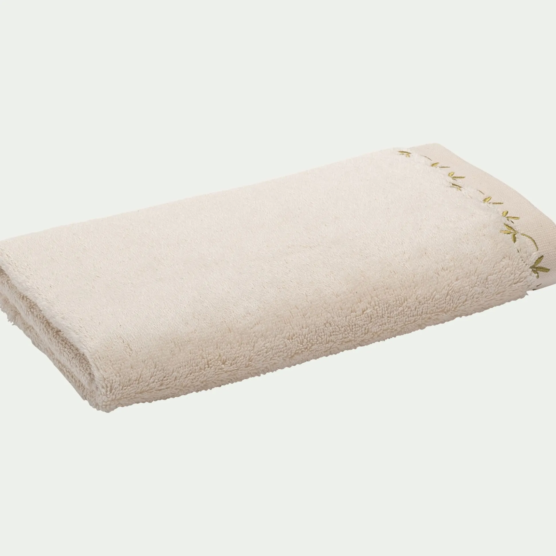 Plongez dans une expérience de bien-être ultime avec cette serviette de toilette, conçu pour vous offrir une sensation de douceur et de confort incomparable à chaque utilisation. Doté d’une teinte beige élégante et d’une broderie verte raffinée, il ajoute une touche subtile de style à votre salle de bain. Fabriqué en coton certifié Oeko-Tex®, cette serviette de toilette allie résistance et douceur pour choyer votre peau avec délicatesse. Indispensable dans votre rituel de bain, cette serviette s’adapte à tous les décors et toutes les préférences. Complétez votre ensemble de bain avec d’autres pièces de la collection pour créer un univers de détente harmonieux : drap de bain, gant de toilette, ou encore serviettes d’invité. Offrez-vous une expérience de bain luxueuse et apaisante avec cette serviette d’une qualité exceptionnelle.