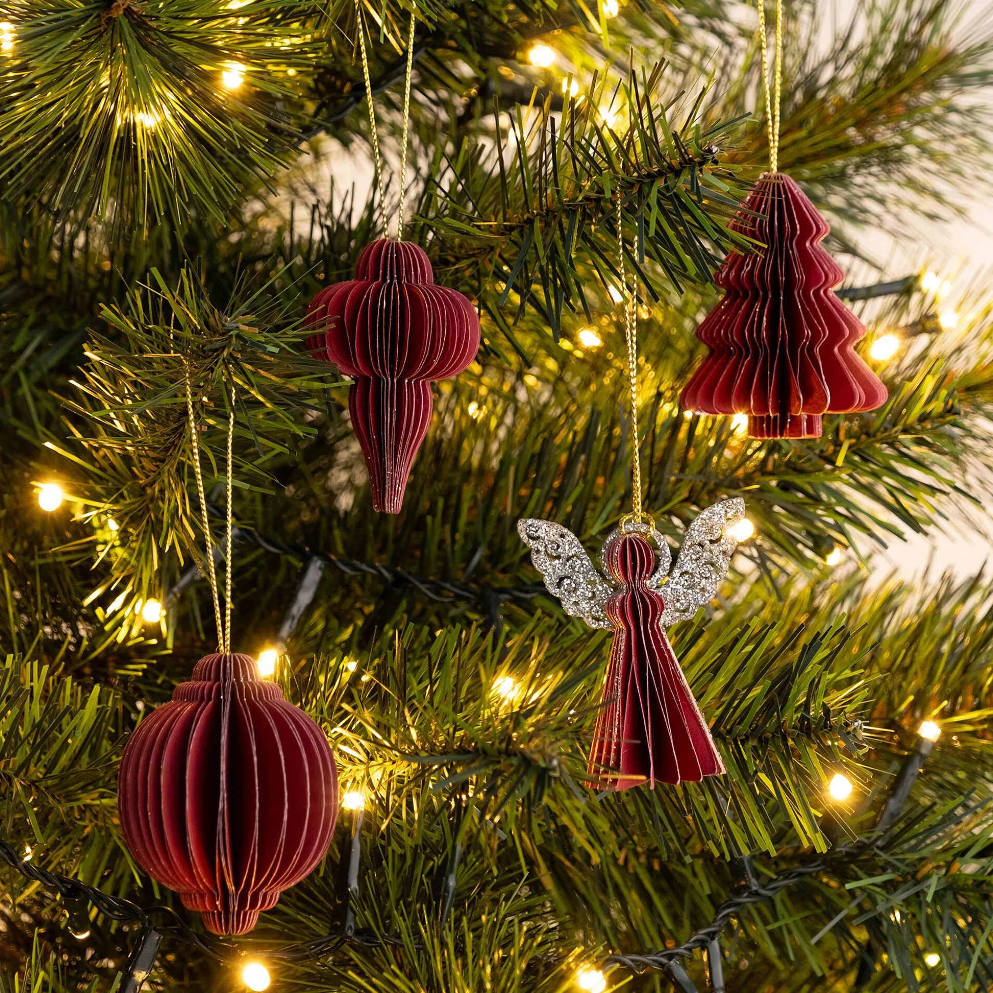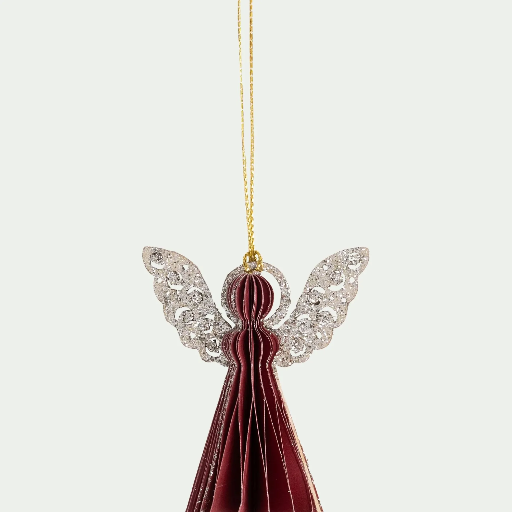 La suspension Gannat revisite les symboles de Noël avec poésie. Inspirées de l’art de l’origami, ces décorations en papier plié prennent la forme d’un ange, d’un sapin et d’autres motifs emblématiques. Leur coloris rouge profond célèbre la tradition et apporte une note chaleureuse et délicate au sapin.