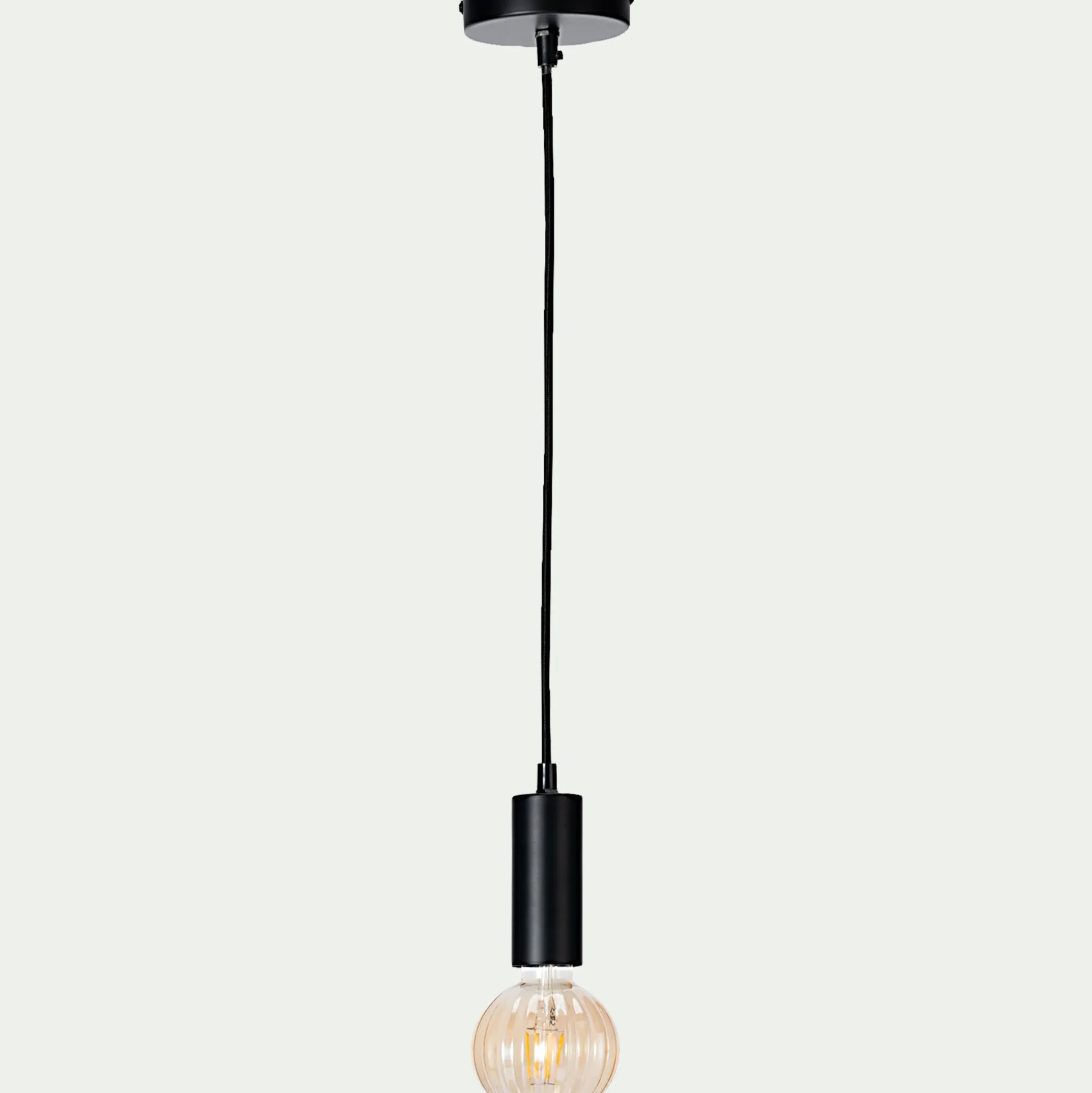 Découvrez cette suspension électrifiée minimaliste qui se présente sous la forme d’un long câble enveloppé de tissu et d’une douille en noir mat. L’ensemble arbore un design épuré qui conviendra parfaitement à votre intérieur. Grâce à sa belle longueur (1,5 m de câble), cette suspension en métal trouve parfaitement sa place dans une pièce haute sous-plafond. Ce luminaire est un bel élément déco pour votre pièce de vie.