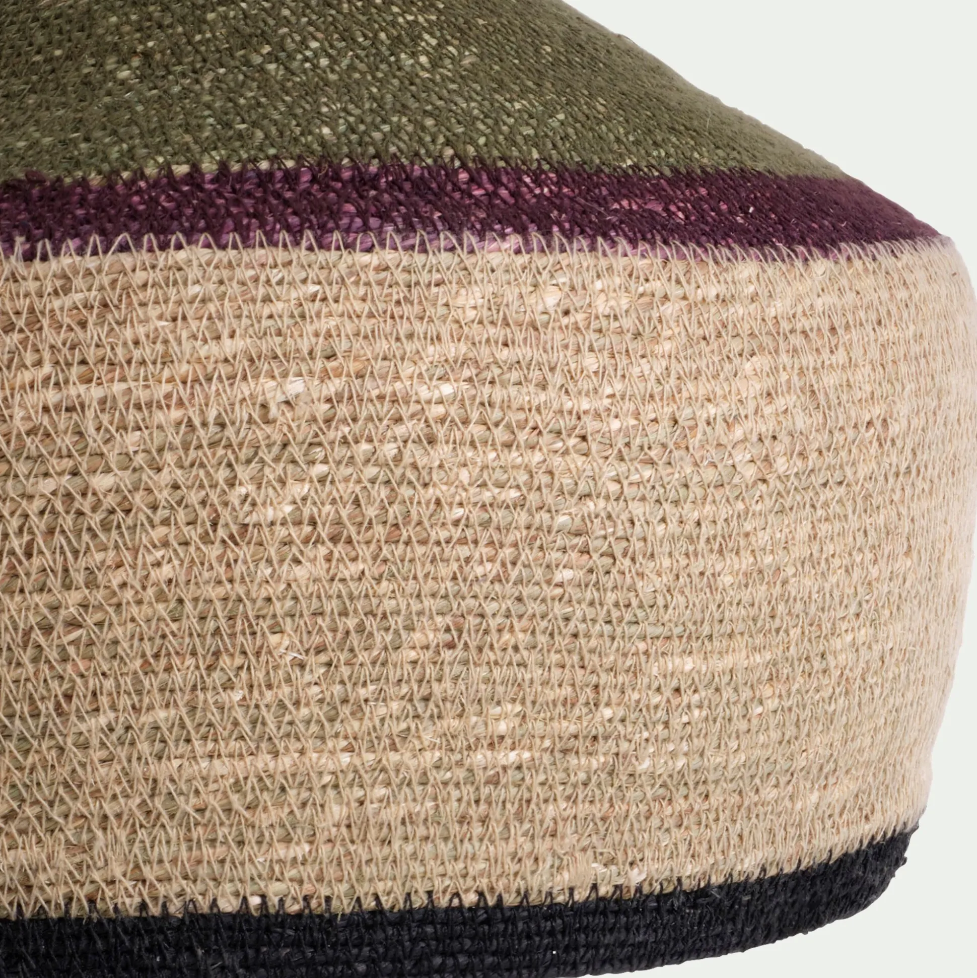 Découvrez cette belle suspension électrifiée tressée en jonc de mer. Ces fibres végétales offrent une toile authentique et lumineuse, soulignée par un liseré rouge bordeaux au-dessus et un liseré noir au bas. On retrouve aussi du vert sur le haut de la suspension. Alors, ce mélange de couleurs apporte une touche décorative supplémentaire à votre intérieur. Cette suspension naturelle capture l’essence de la mer et diffuse un éclairage tamisé, comme un havre de paix et d’évasion. Cette suspension en jonc de mer trouvera aisément sa place dans n’importe quelle pièce de vie. Souple, chaque abat-jour présente un galbe particulier qui peut être modelé selon vos envies.