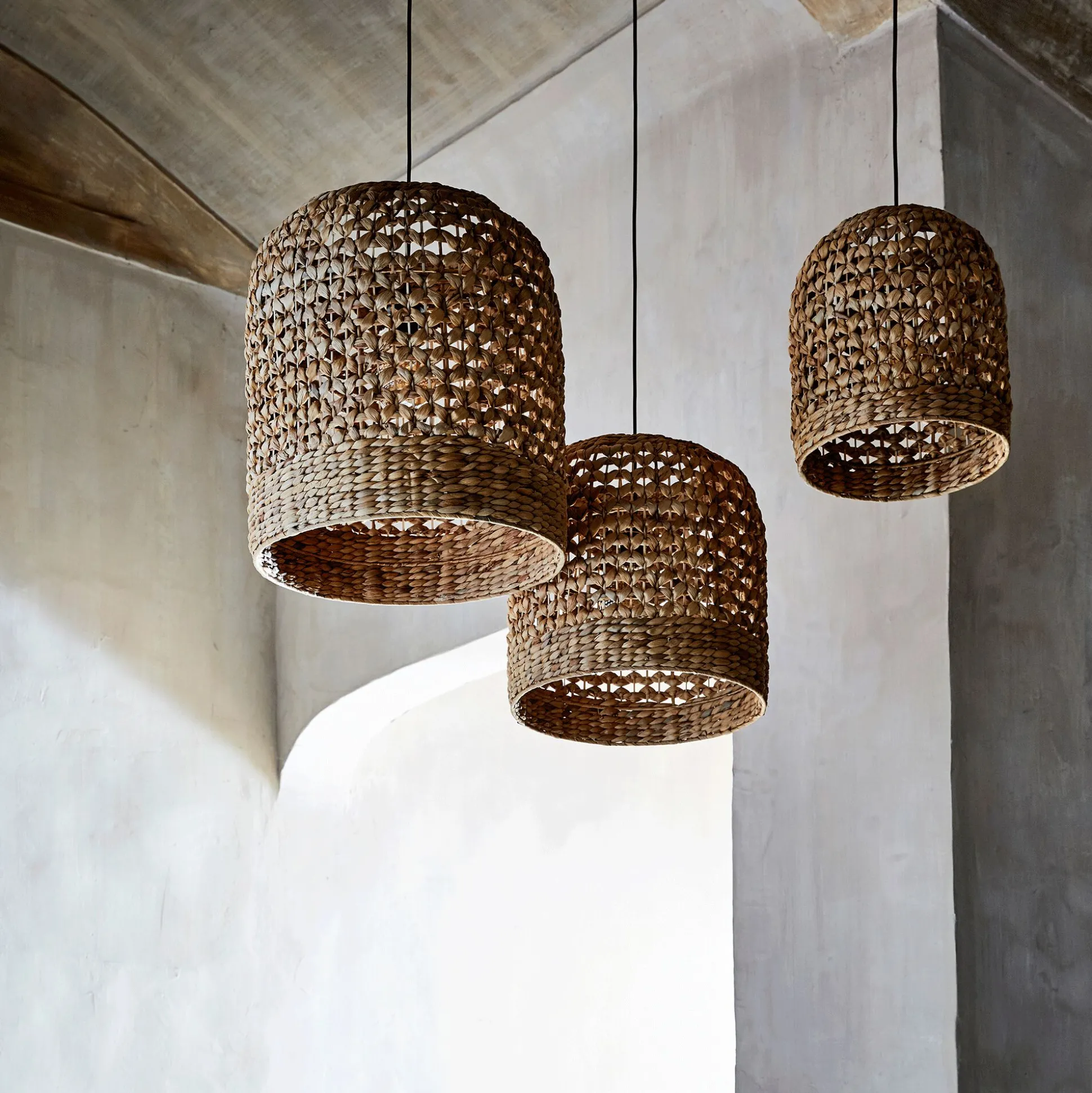 La gamme de suspensions Varage inspire par son style ethnique et tropical. Chaleureuse et naturelle, cette suspension non électrifiée séduit par son tressage aéré qui laisse se diffuser la lumière et projettera des ombres fascinantes sur les murs de votre intérieur. Déclinée dans 3 tailles différentes, elle s’utilisera seule ou combinée pour jouer sur les volumes.