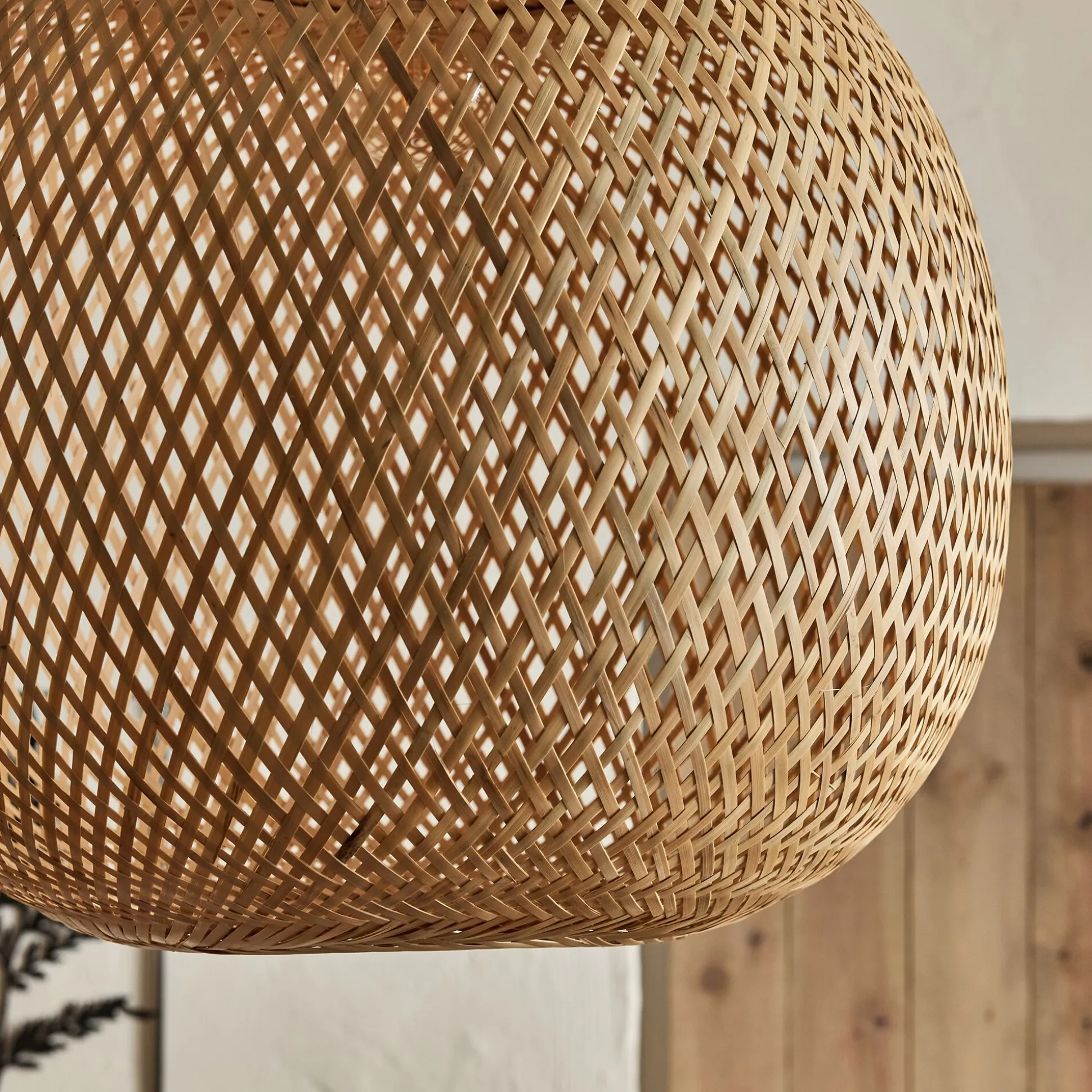 La suspension Sagone se distingue par son design pulpeux qui ne laisse personne indifférent. De 57 cm de diamètre, cette suspension ronde occupe généreusement l’espace. Pièce maitresse de vos hauteurs, elle incarne l’élégance avec simplicité. Cette suspension non électrifiée arbore un tressage en bambou inspiré du cannage pour un style naturel. Les nattes s’entremêlent tendrement pour laisser passer la lumière et offrir une atmosphère chaleureuse où les ombres jouent un rôle important.