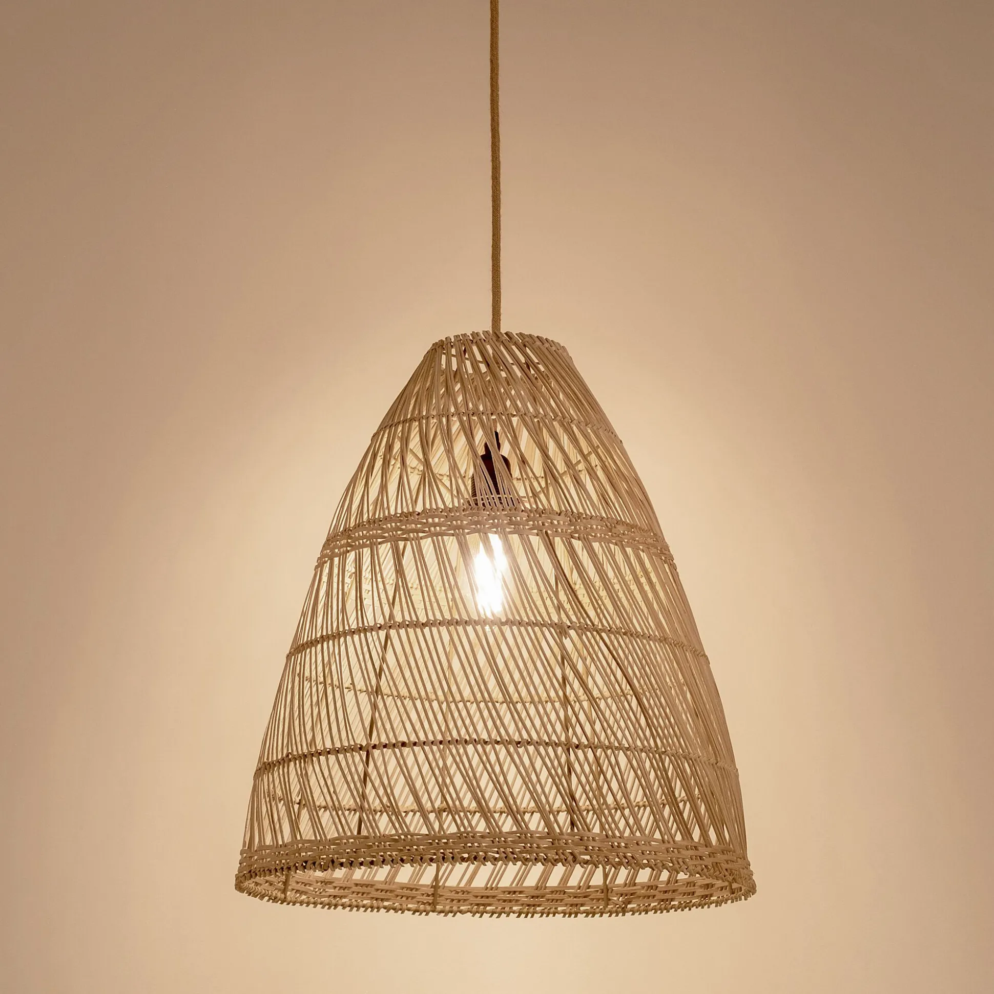 Vos hauteurs sous plafond gagnent en élégance avec la suspension non électrifiée Gourdon. Son design aérien est rendu possible grâce au tressage ingénieux du rotin. Les fibres naturelles s’entremêlent et forment un abat-jour éthéré qui sublime votre intérieur avec grâce. Cette suspension en rotin apporte une touche naturelle à tous types de décoration.