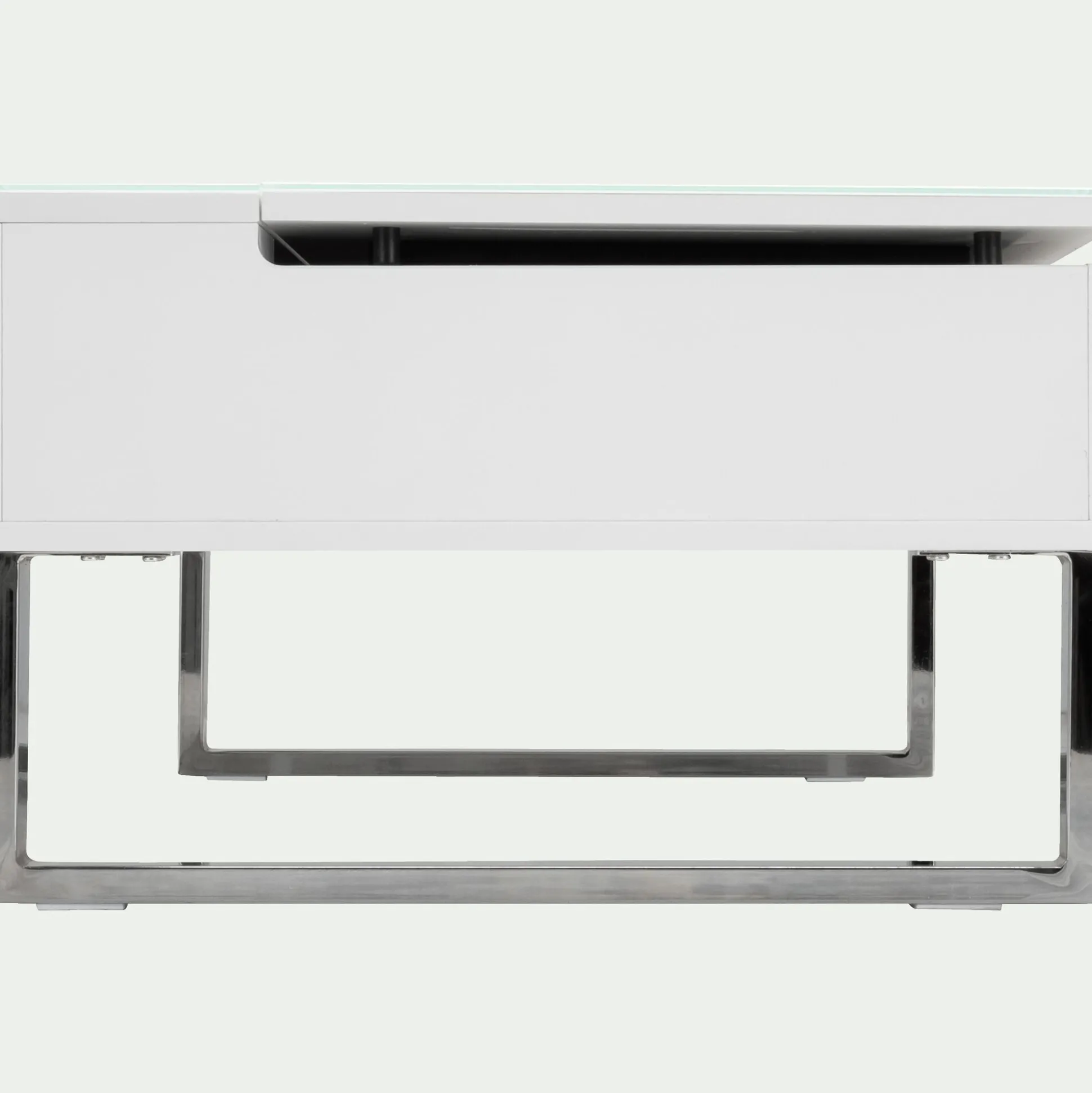 Cette table basse blanche avec tablette relevable vous offre un vaste espace de rangement très appréciable pour stocker télécommandes et magazines. En position haute, sa tablette fera office de table de repas pour 2 personnes. Ce meuble de salon est donc très pratique pour aménager les petits espaces de type studio ou chambre d’étudiant.