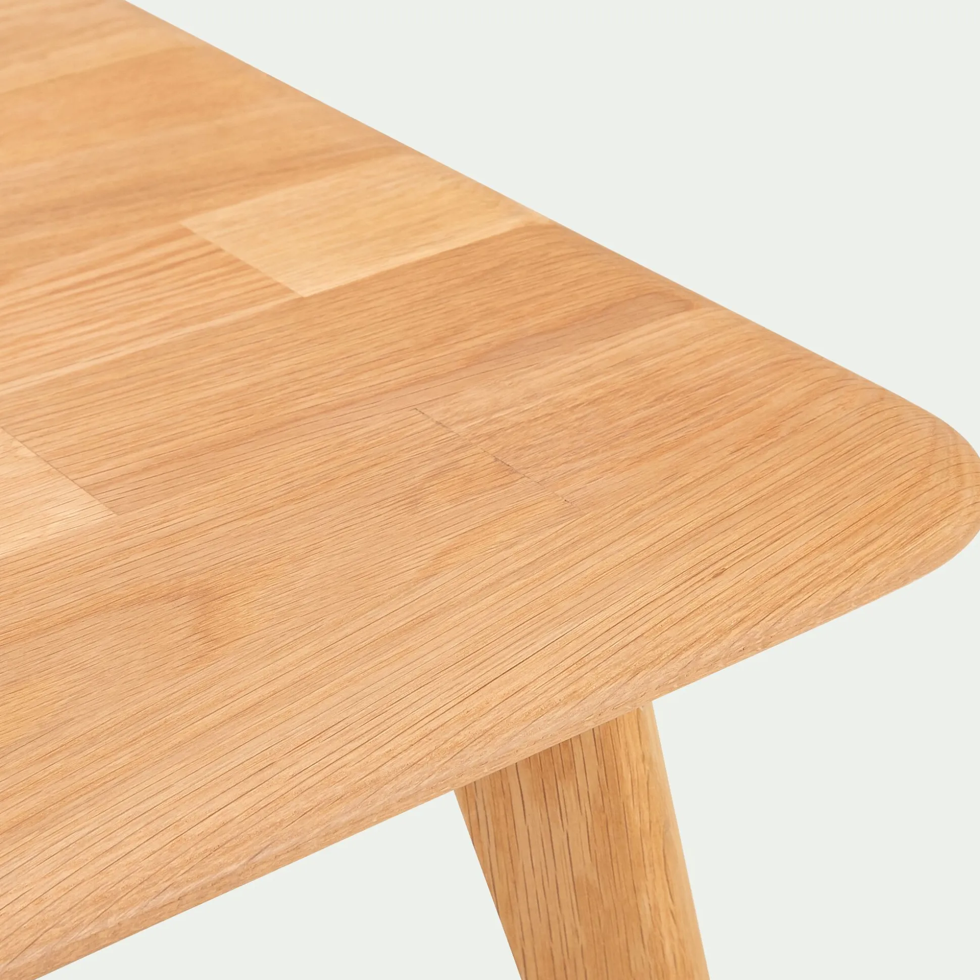 Chêne massif et finition vernis naturel.