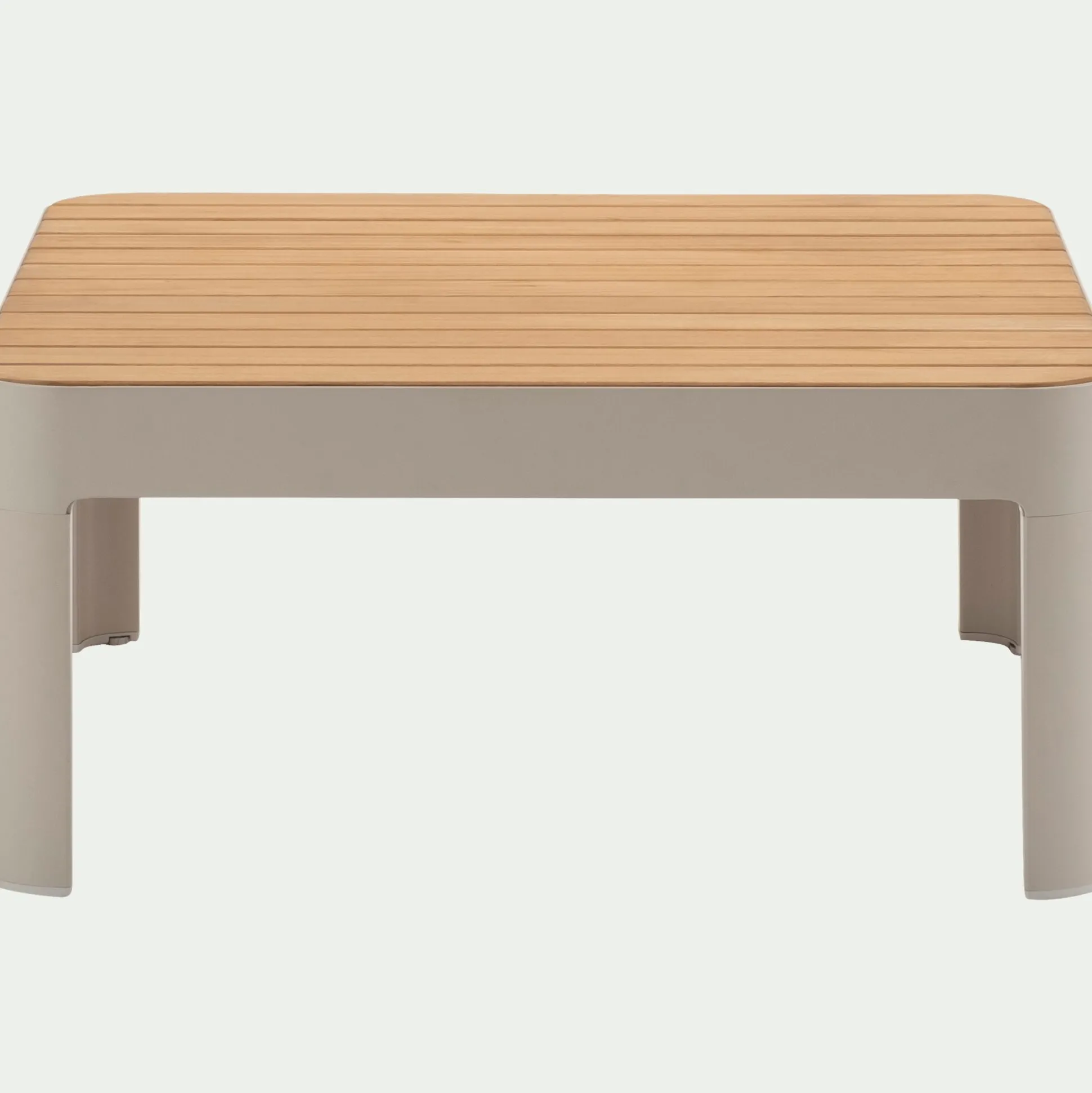 Piètement en aluminium finition coloris sable et plateau en Teck FSC®.