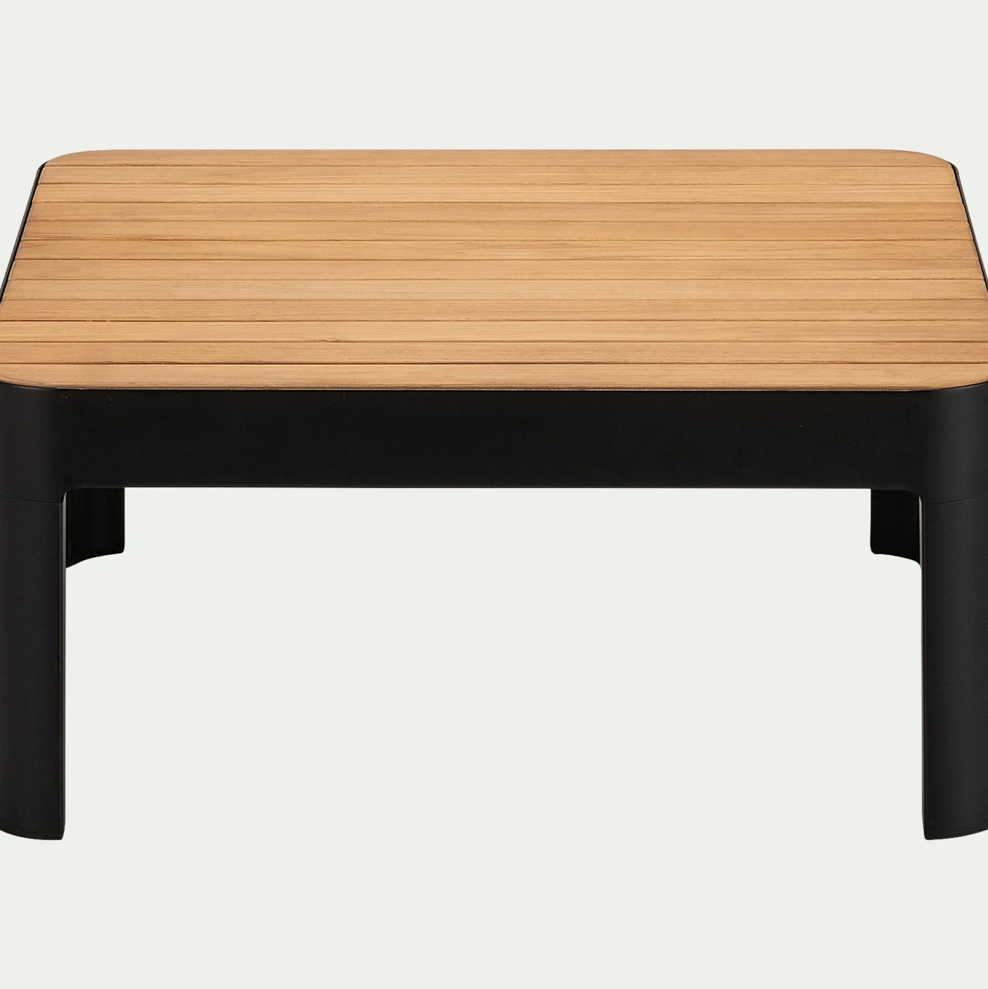 Piètement en aluminium finition peinture époxy noir et plateau en Teck FSC®.