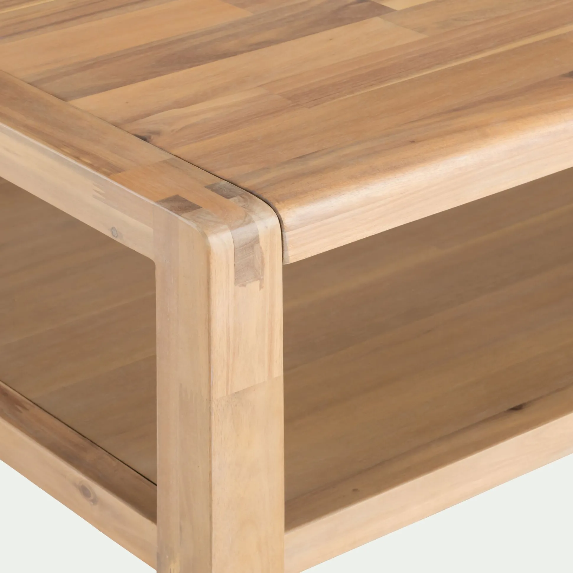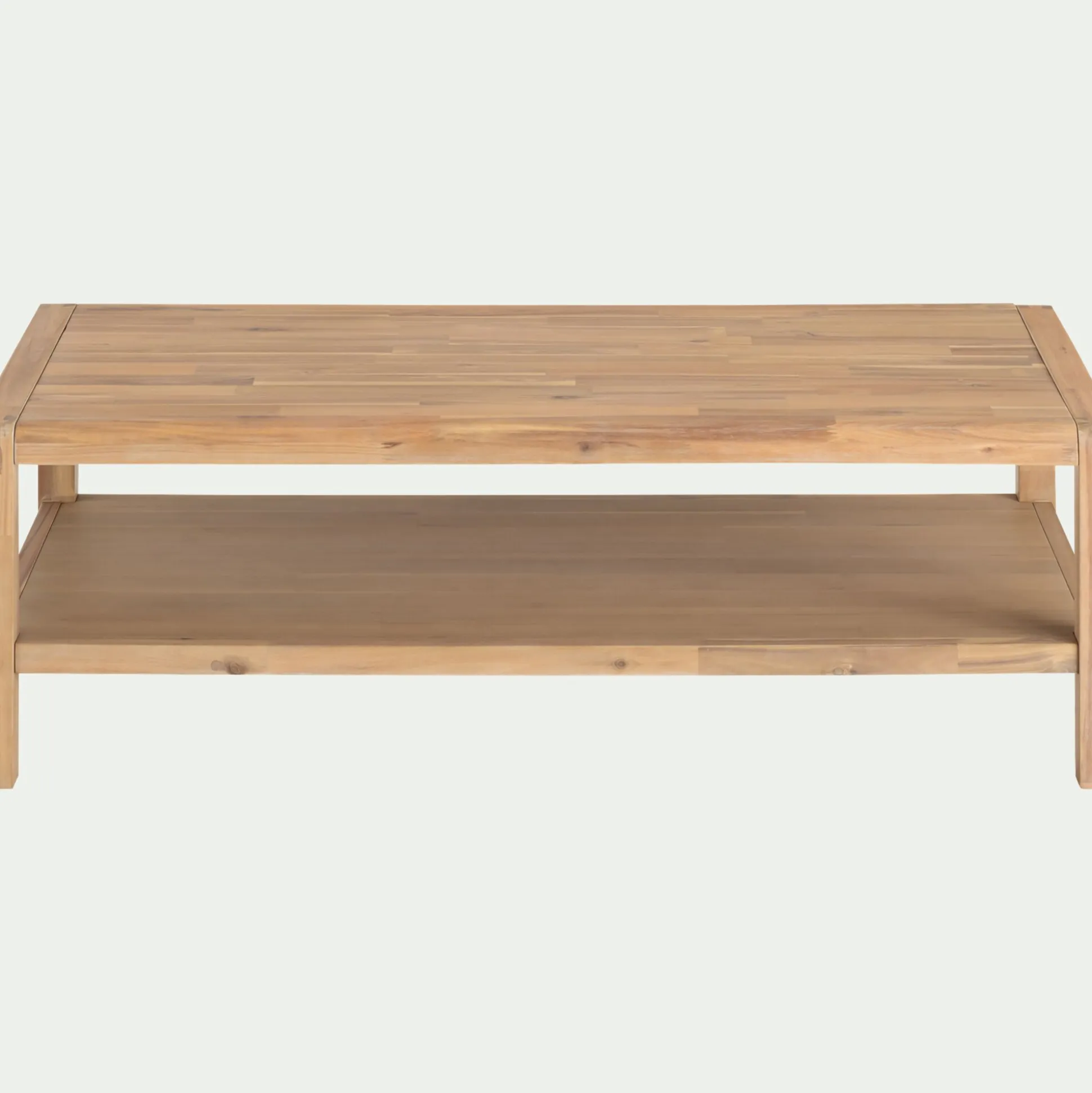Découvrez cette belle table basse en bois d’acacia. Elle arbore un design intemporel et saura trouver sa place dans votre salon. Elle présente deux plateaux sur lesquels vous pourrez poser de la déco et ranger quelques affaires. Ce meuble, fabriqué dans une matière brute, apportera un charme naturel à l’ambiance de votre pièce de vie. Associez cette table basse à un joli tapis berbère et un canapé confortable, et créez un vrai coin cocooning chez vous.