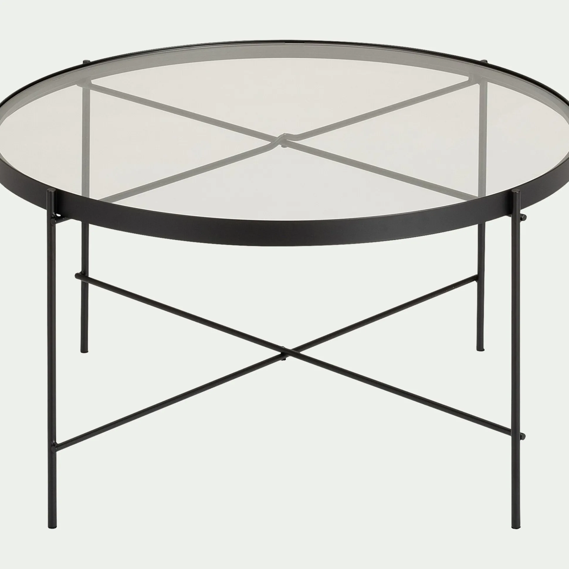 Table basse ronde en acier et verre trempé – noir D72,6xH40cm