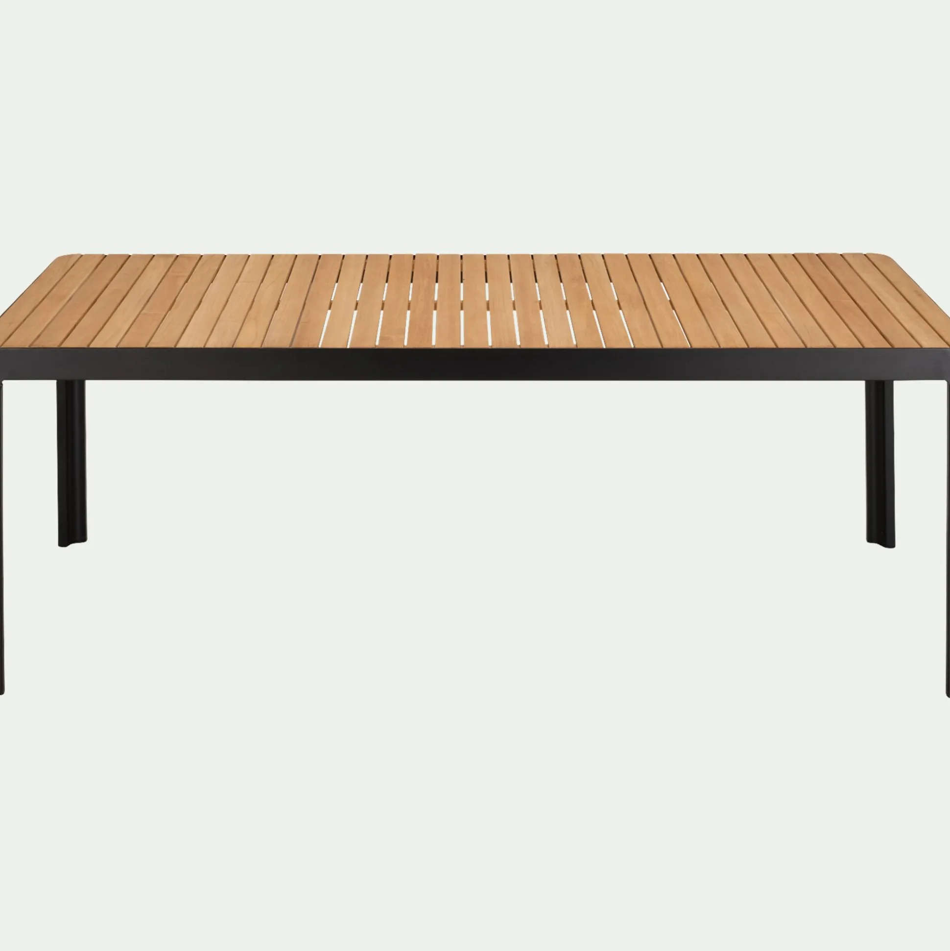 Structure en aluminium et plateau en Teck FSC avec finition peinture époxy coloris noir.
