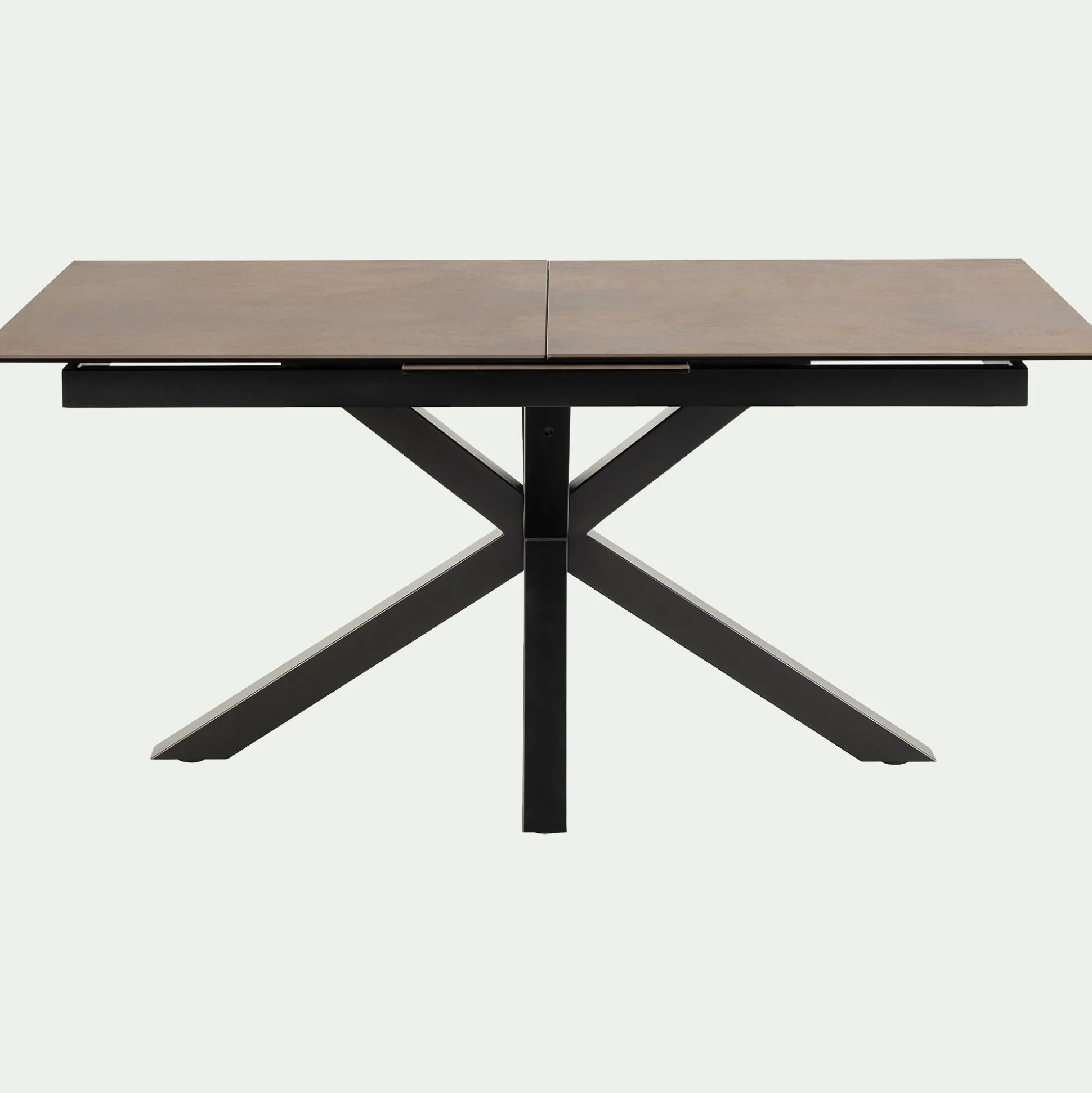 La table de repas 8 places Isota séduit par son alliance harmonieuse entre design et fonctionnalité. Son plateau en céramique et verre trempé couleur bronze repose sur un piètement en acier noir aux lignes modernes. Grâce à sa rallonge automatique dissimulée, elle passe aisément de 168 à 210 cm, accueillant de 6 à 8 convives. Cette table extensible allie élégance, robustesse et praticité pour des repas conviviaux en toute simplicité.