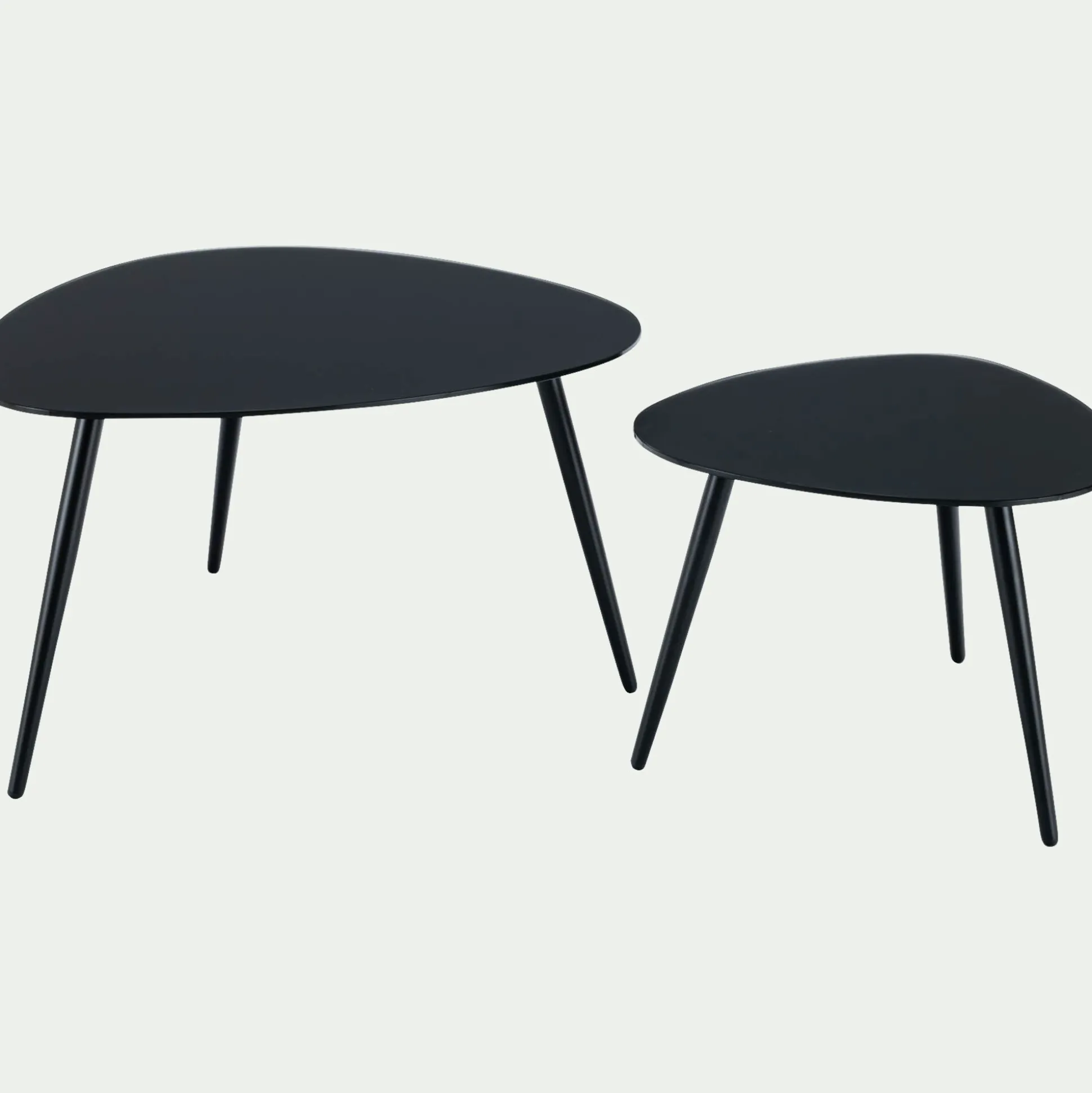 Envie de donner du caractère et du volume à votre salon ? Ces deux tables basses gigognes sont faites pour vous ! Leur look contemporain et brut, associé à un robuste piètement en tube en acier, en fait des pièces uniques. Chaque table est surmontée d’un élégant plateau en verre trempé avec une finition de peinture noire, offrant un design original et lumineux. Disposez-les harmonieusement sur un tapis devant votre canapé pour créer un espace convivial et profiter de moments agréables dans votre pièce de vie.