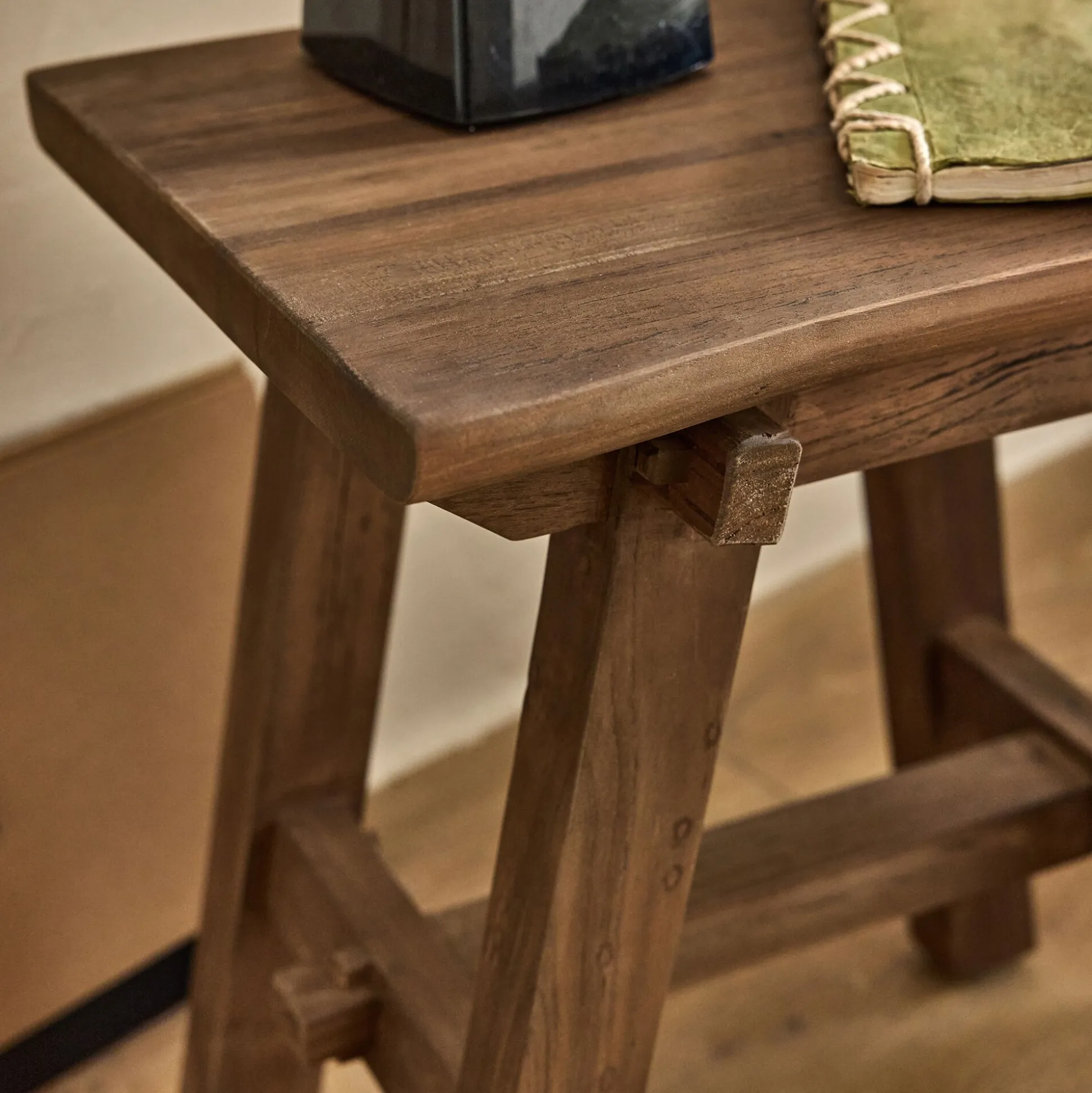 Le tabouret Vanity séduit par sa simplicité authentique et son esprit brut. Confectionné en teck recyclé certifié FSC, il met en avant la beauté naturelle du bois et ses nuances chaleureuses. Avec son assise basse à 45 cm, il s’intègre aussi bien dans une salle à manger que dans un coin détente. Sa silhouette rustique en fait une pièce pleine de caractère, idéale pour une déco à l’allure naturelle et durable.