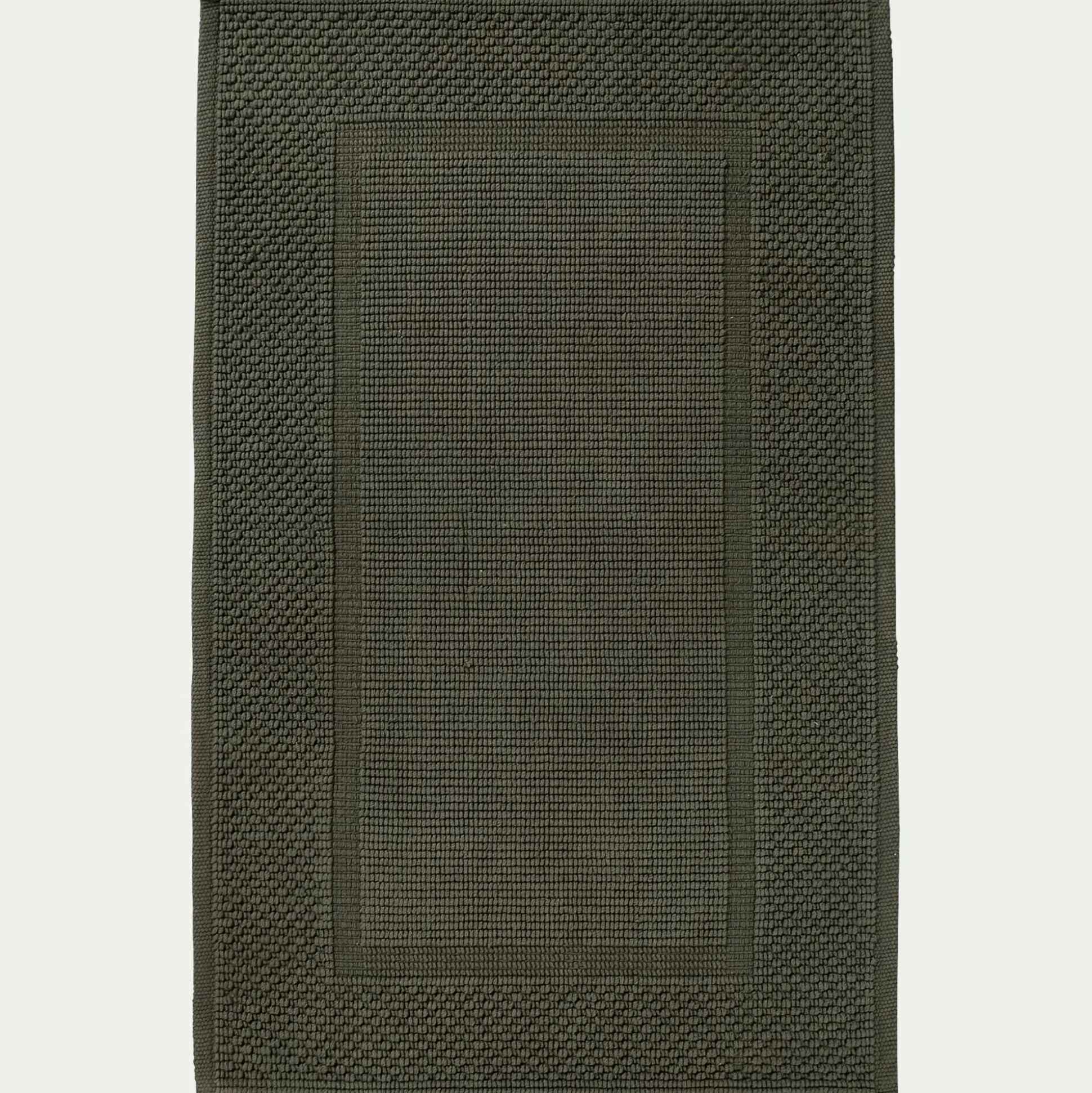 Avec son coloris vert cèdre, le tapis de bain Bagno participe à un style naturel et à une atmosphère zen. Au pied de la douche ou de la baignoire, il accueille vos pieds à la sortie de l’eau et les sèche rapidement grâce à son grammage de 1600 g/m2. Ce tapis de bain vert arbore un style monochrome, relevé par un tissage jacquard. De jolis motifs tissés viennent apporter texture et volume à ce tapis de bain en coton. Cette finition noble participe à un style cocooning, adapté à cette pièce dédiée au bien-être.