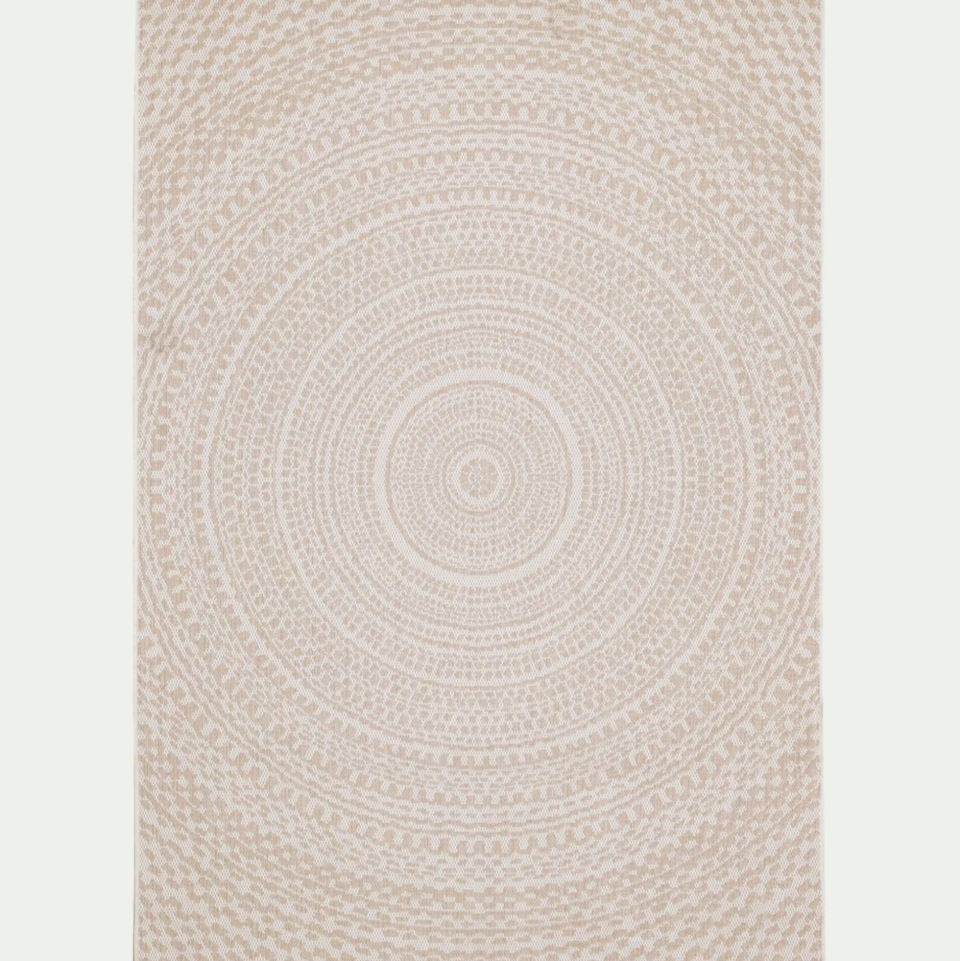 Un magnifique tapis en 120x170cm au décor spirale dans des tonalités naturelles. Avec son motif ensorcelant et son mélange de couleurs écrues, ce tapis au tissu tissé donne du volume à votre sol pour un effet de grandeur apprécié. Son tissu en plastique recyclé est très résistant ce qui vous permet de profiter de votre tapis durant de nombreuses années. Aussi bien adapté pour un usage intérieur que pour un usage extérieur, il décore aussi bien votre terrasse que votre salon. Ce grand tapis écru au style exotique revisité donnera, ainsi, beaucoup de caractère à votre maison ou à votre jardin.