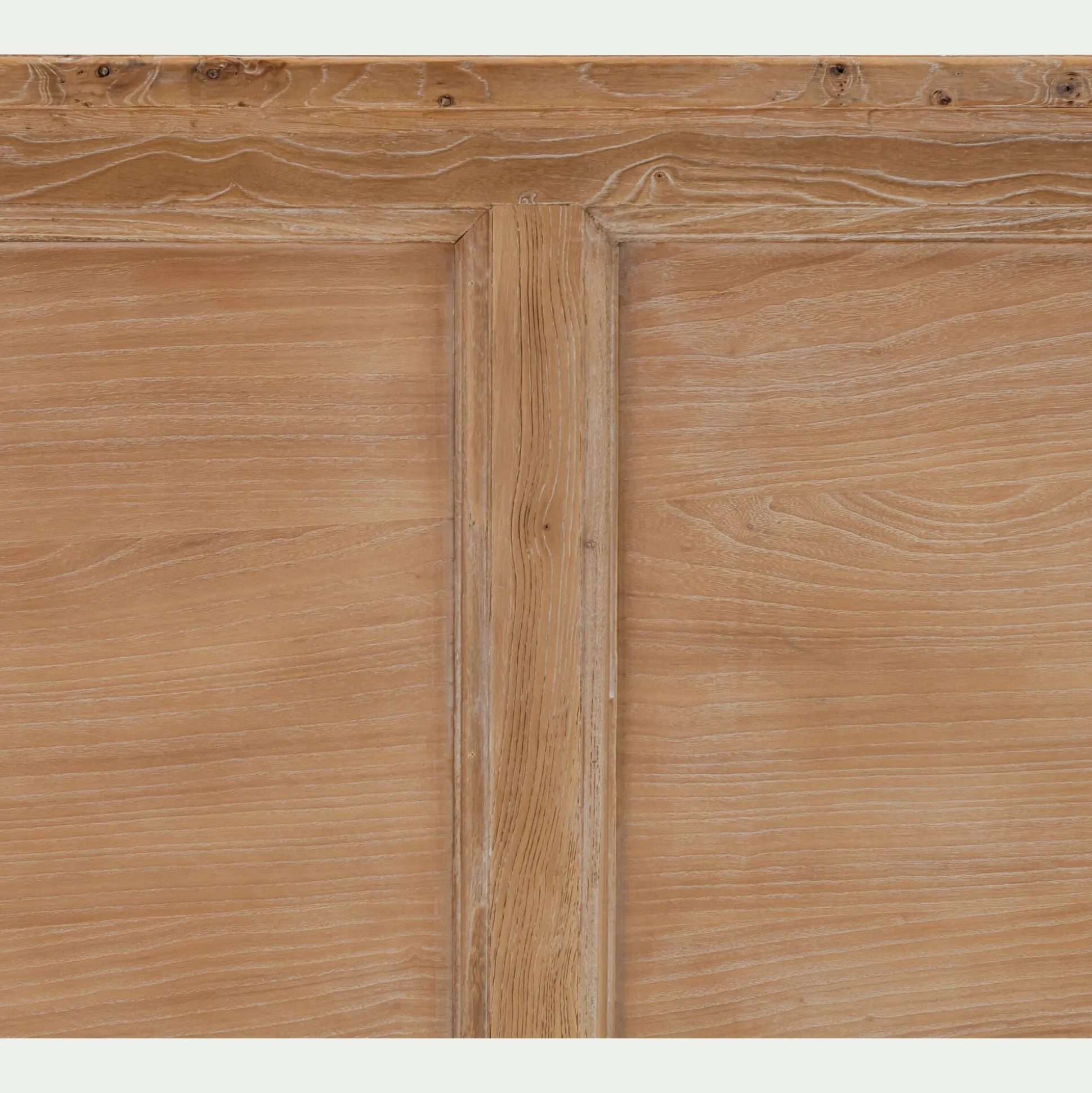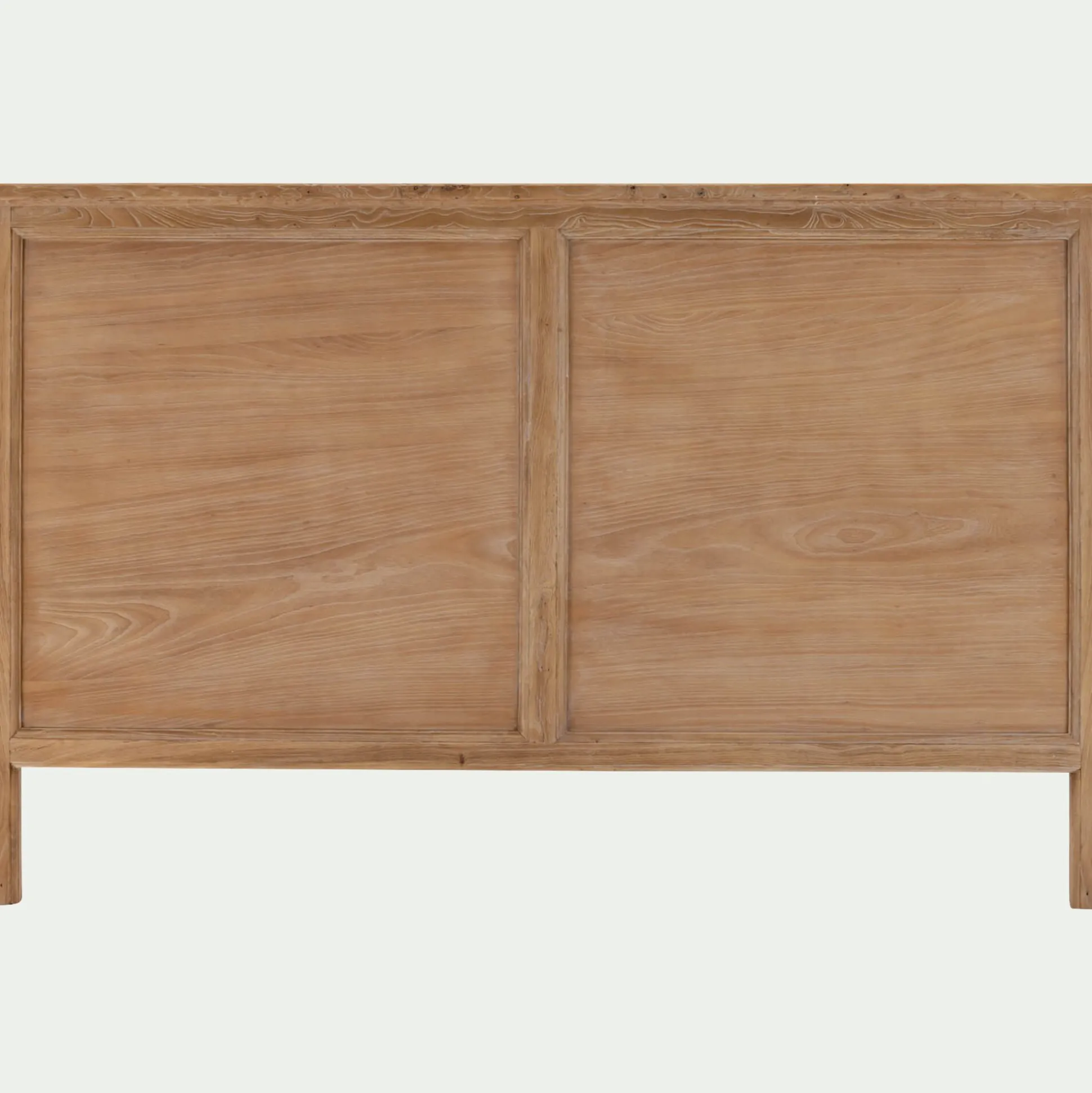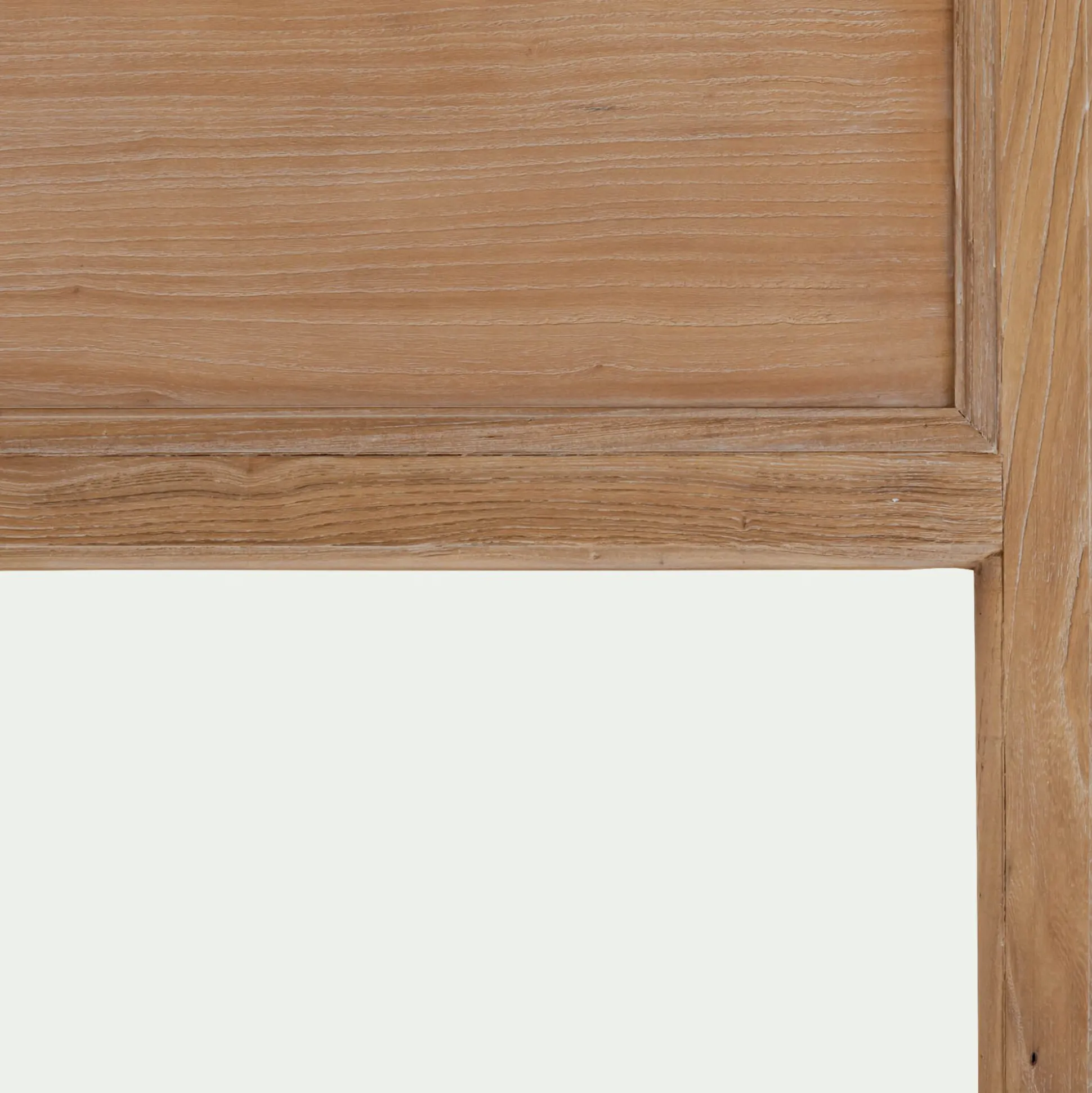 Avec ses 174 cm de large, la tête de lit Alysse habille le mur avec sobriété et caractère. Confectionnée en bois d’orme, elle met en valeur les veinures naturelles de cette essence claire, légèrement blanchies pour un effet patiné. Un look vieilli plein de charme qui s’accorde parfaitement à un intérieur de style bord de mer ou cottage, où l’authenticité règne en maître.