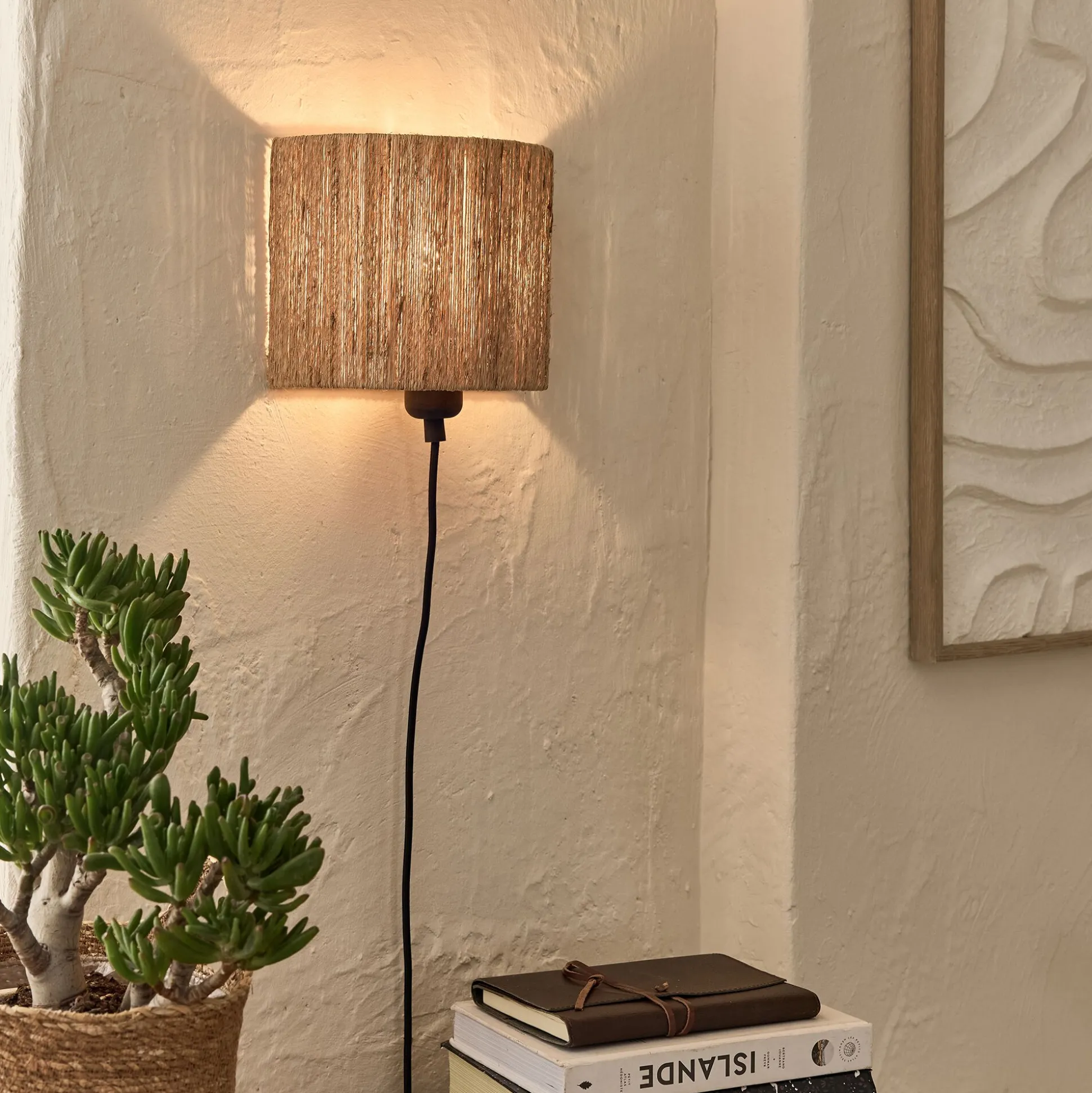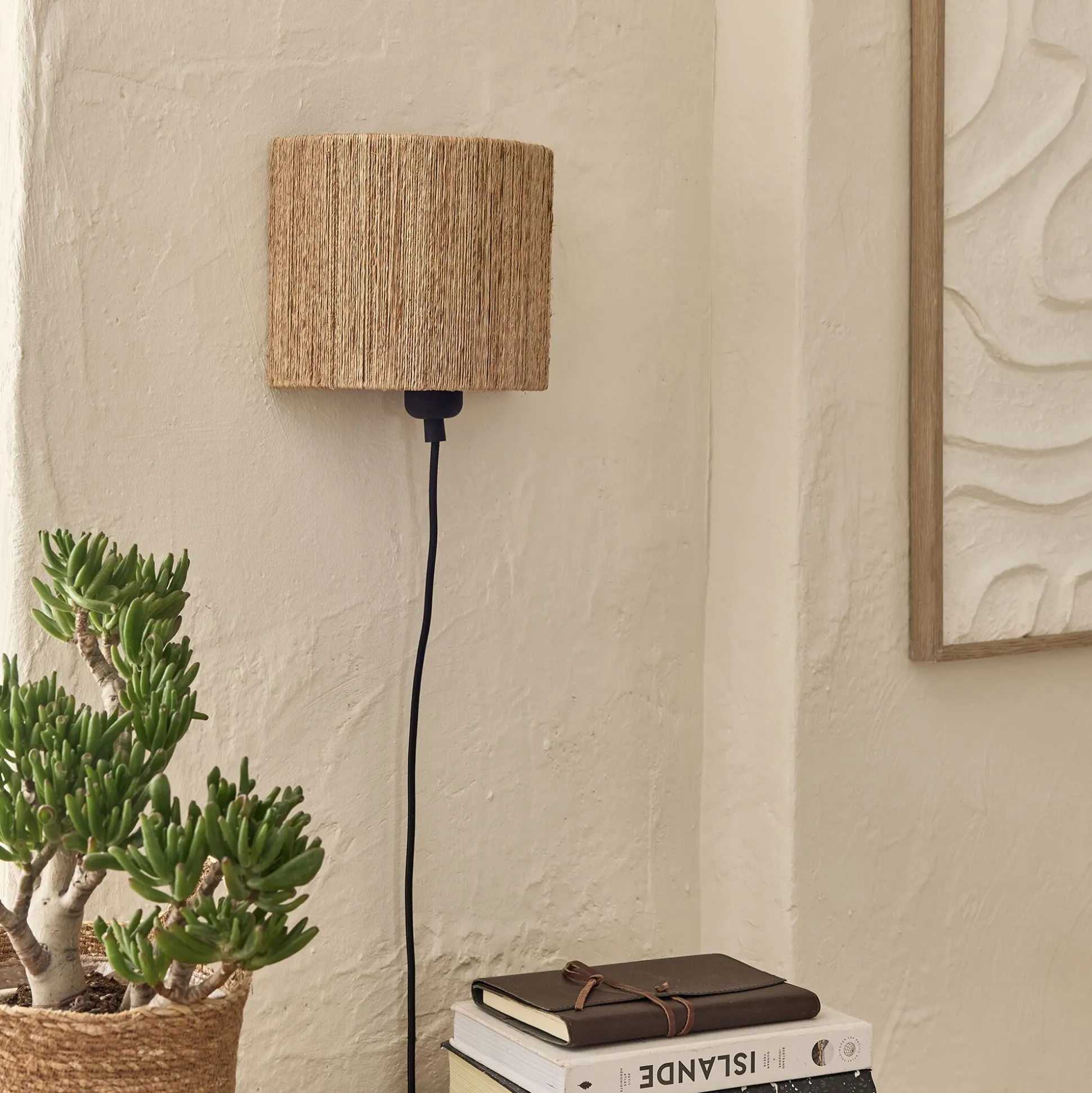Ce joli abat-jour applique habille vos murs avec charme et élégance. Ce luminaire naturel sera la pièce maîtresse de votre pièce de vie. Cette applique non-électrifiée présente une structure en métal, délicatement soulignée par un abat-jour en jute. Les fibres naturelles sont tissées entre elles pour créer ce camaïeu de nuances dorées qui viennent illuminer votre salon ou votre chambre. Original, cet abat-jour applique en fibres naturelles participe à une atmosphère accueillante et conviviale dans votre intérieur.