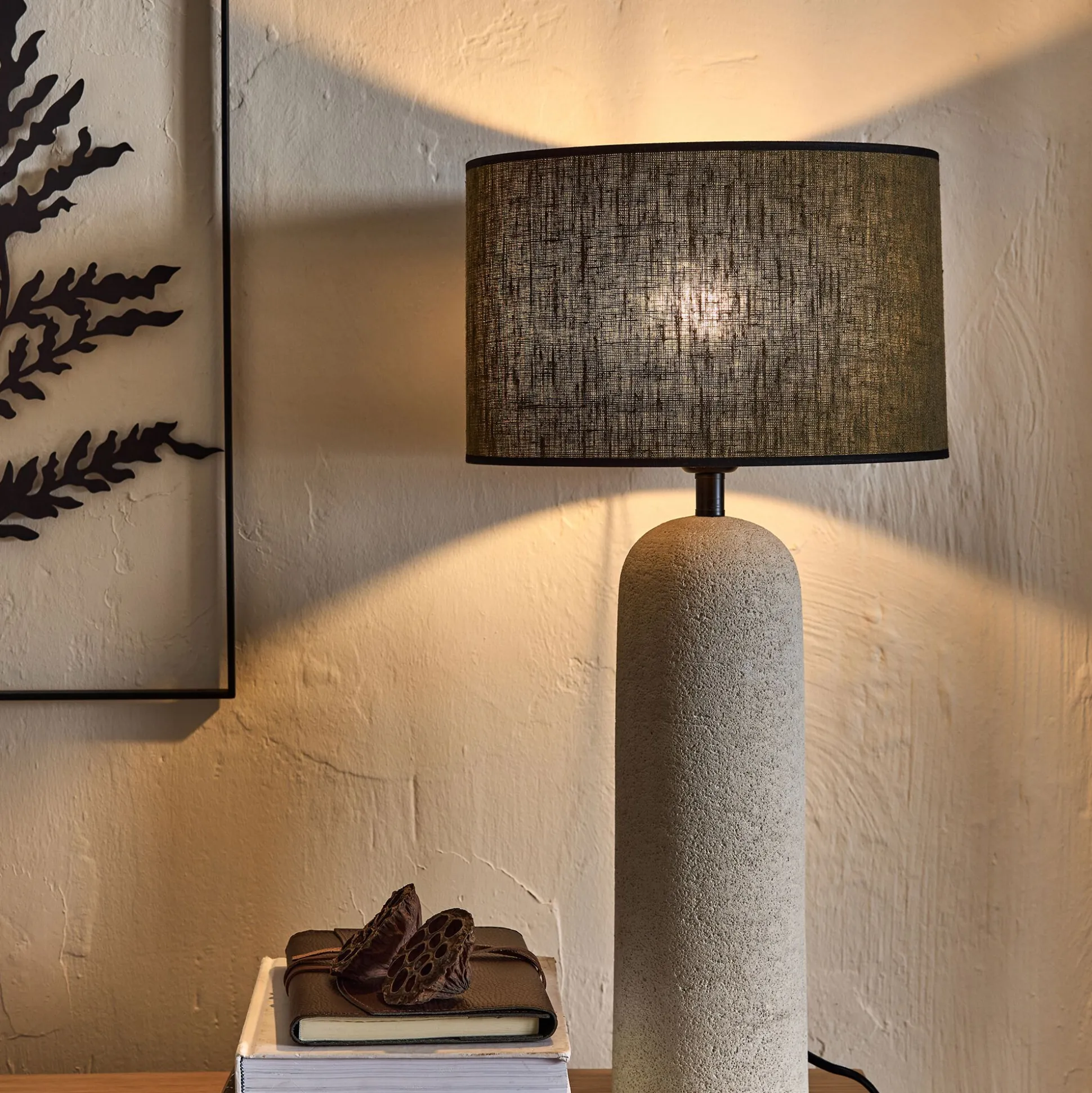 Abat-jour forme cylindre en tissu 100% lin avec une ganse noire.