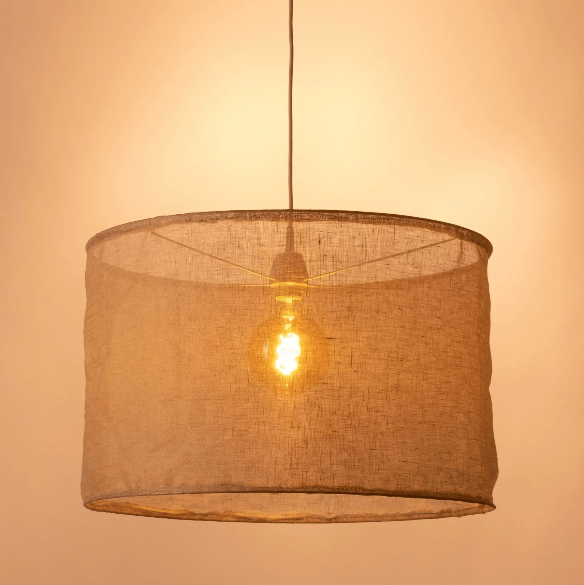 Cette suspension s’inscrit parfaitement dans un style chic et voluptueux. Elle est à la fois sobre et design, l’utilisation du lin avec son effet légèrement froissé apporte une touche plus brute tout en subtilité grâce à la légèreté et aux effets de transparence du lin. Pour un rendu parfait, choisissez une ampoule LED à filament.